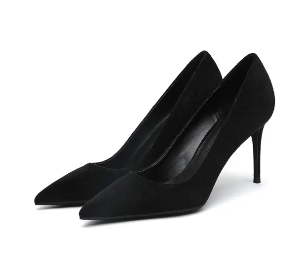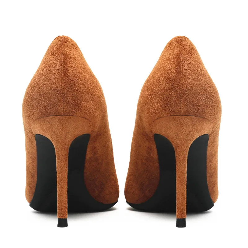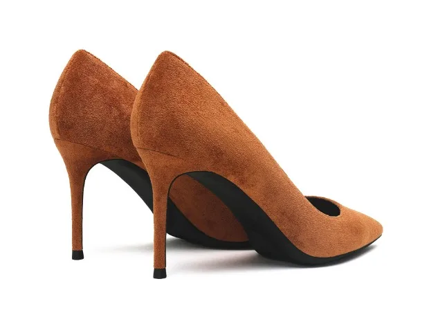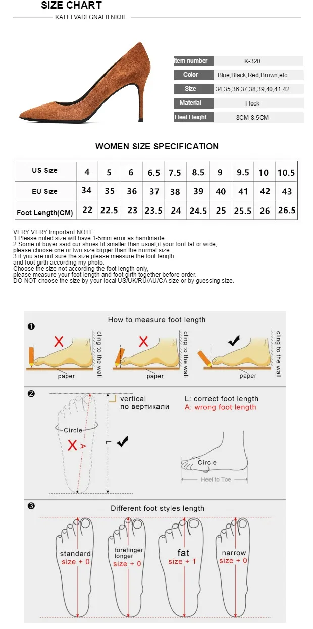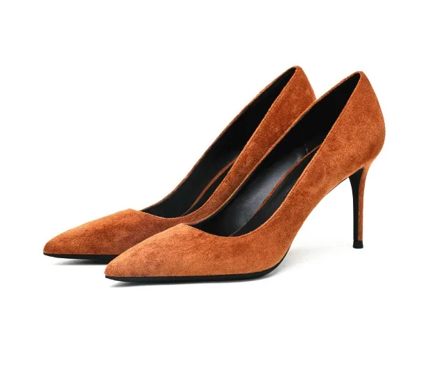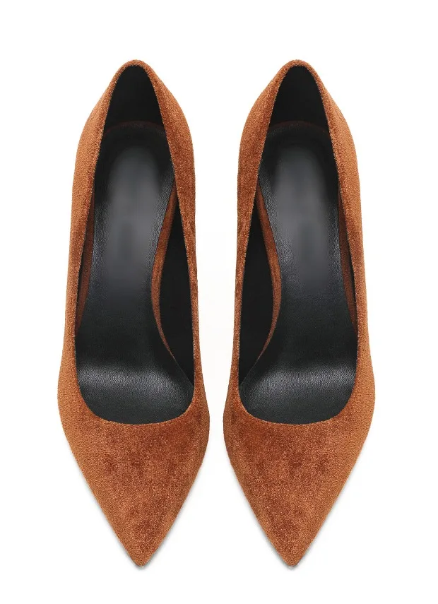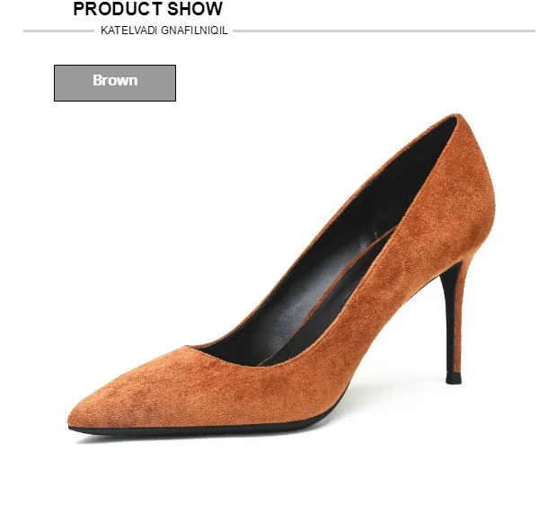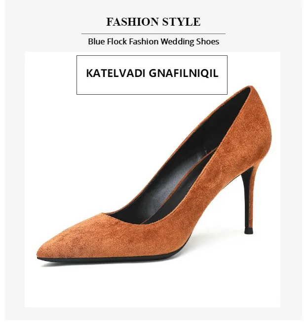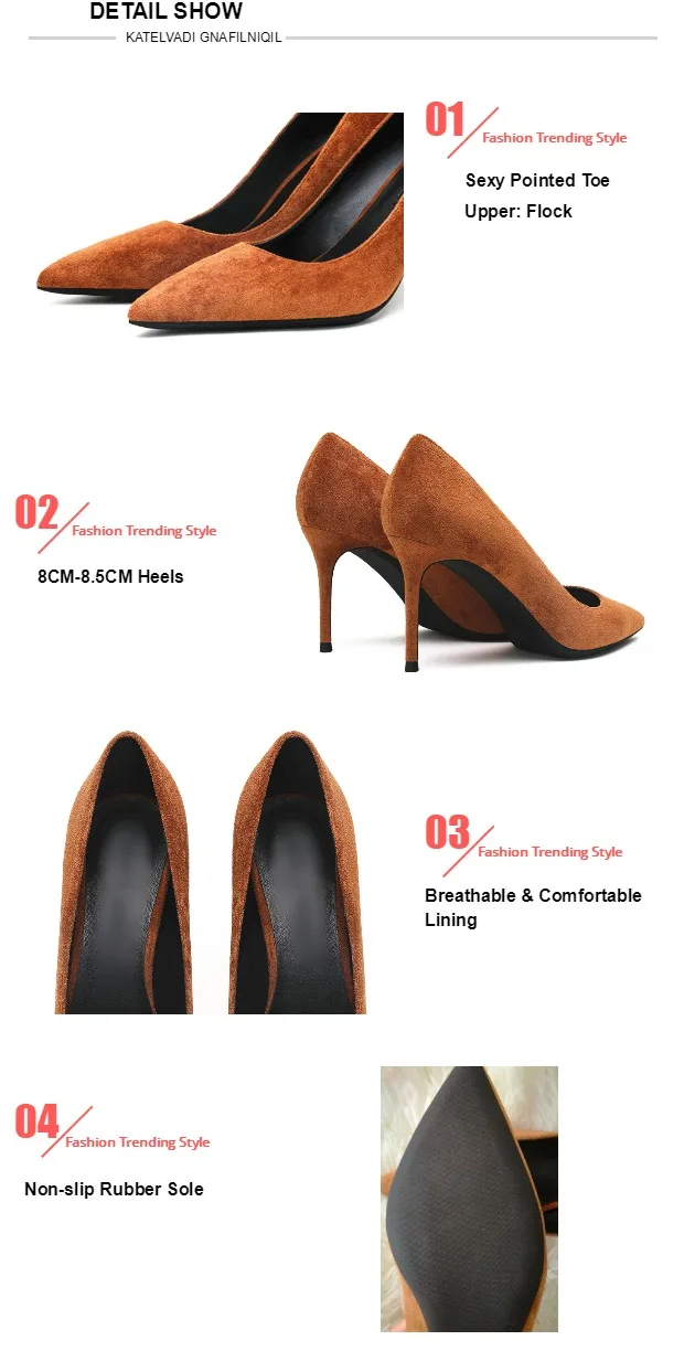 Туфли-лодочки KATELVADI женские, флоковые, высокий каблук 8 см, заостренный носок, пикантная обувь для вечеринки, коричневые, K-320