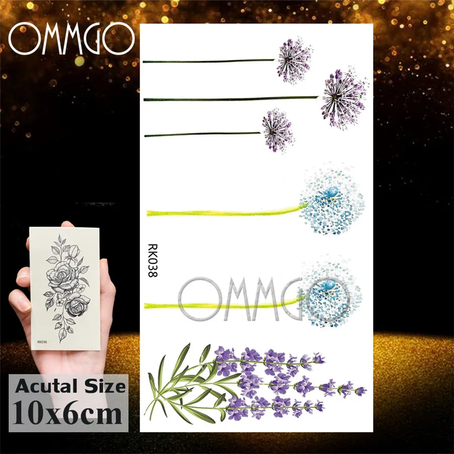 OMMGO Одуванчик Лаванда флеш временные татуировки наклейки на ногу запястье фальшивые татуировки фиолетовая лаванда Татуировка боди-арт Руки бумажные наклейки