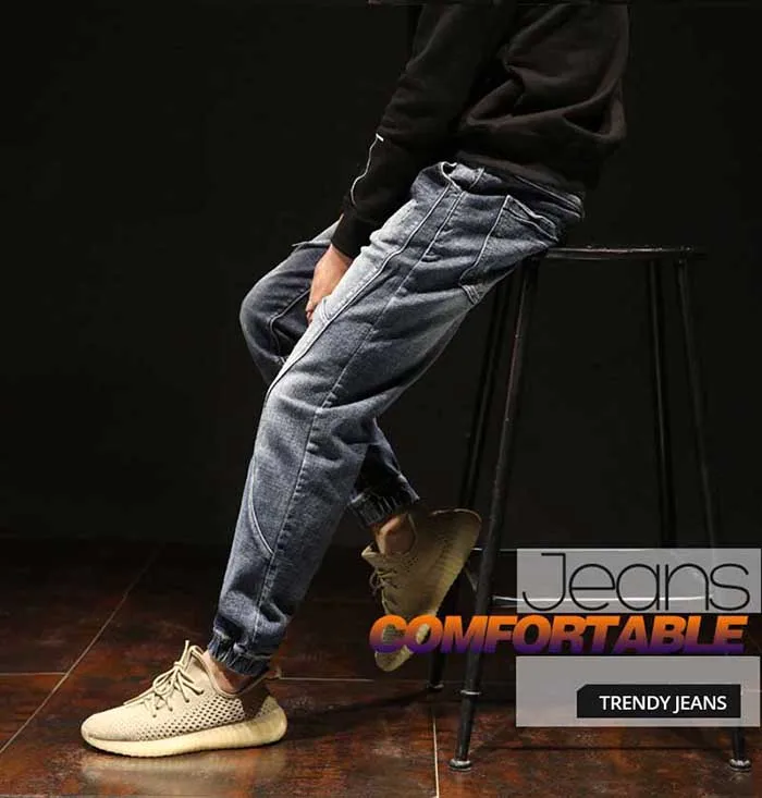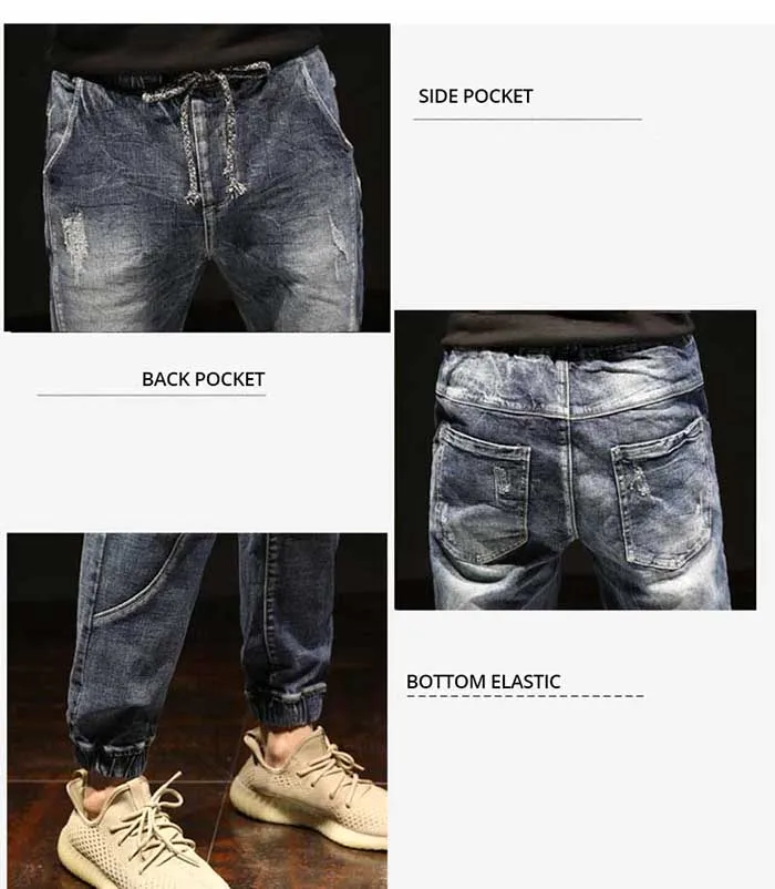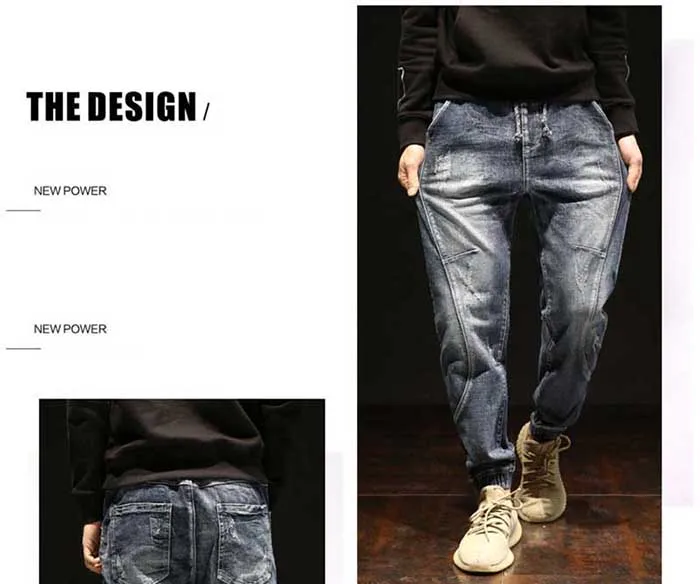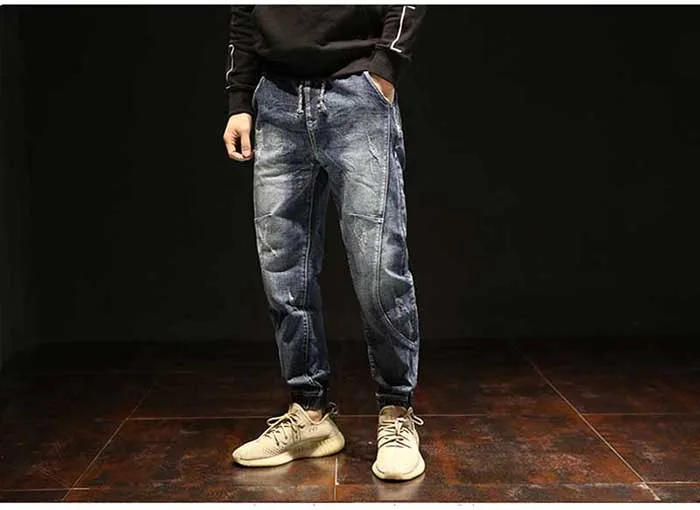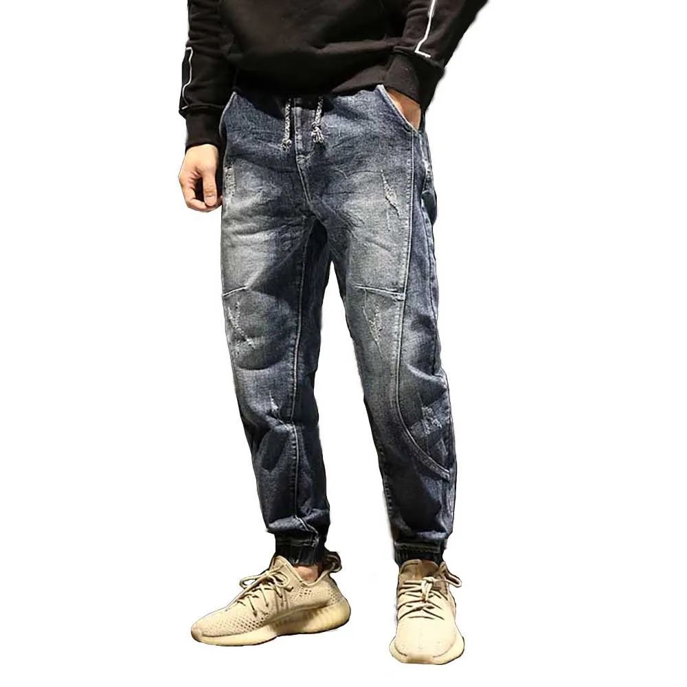 Джинсы-шаровары мужские свободного покроя, модные мешковатые Джоггеры в стиле хип-хоп, джинсы с эластичным поясом, джинсовые брюки в стиле пэчворк