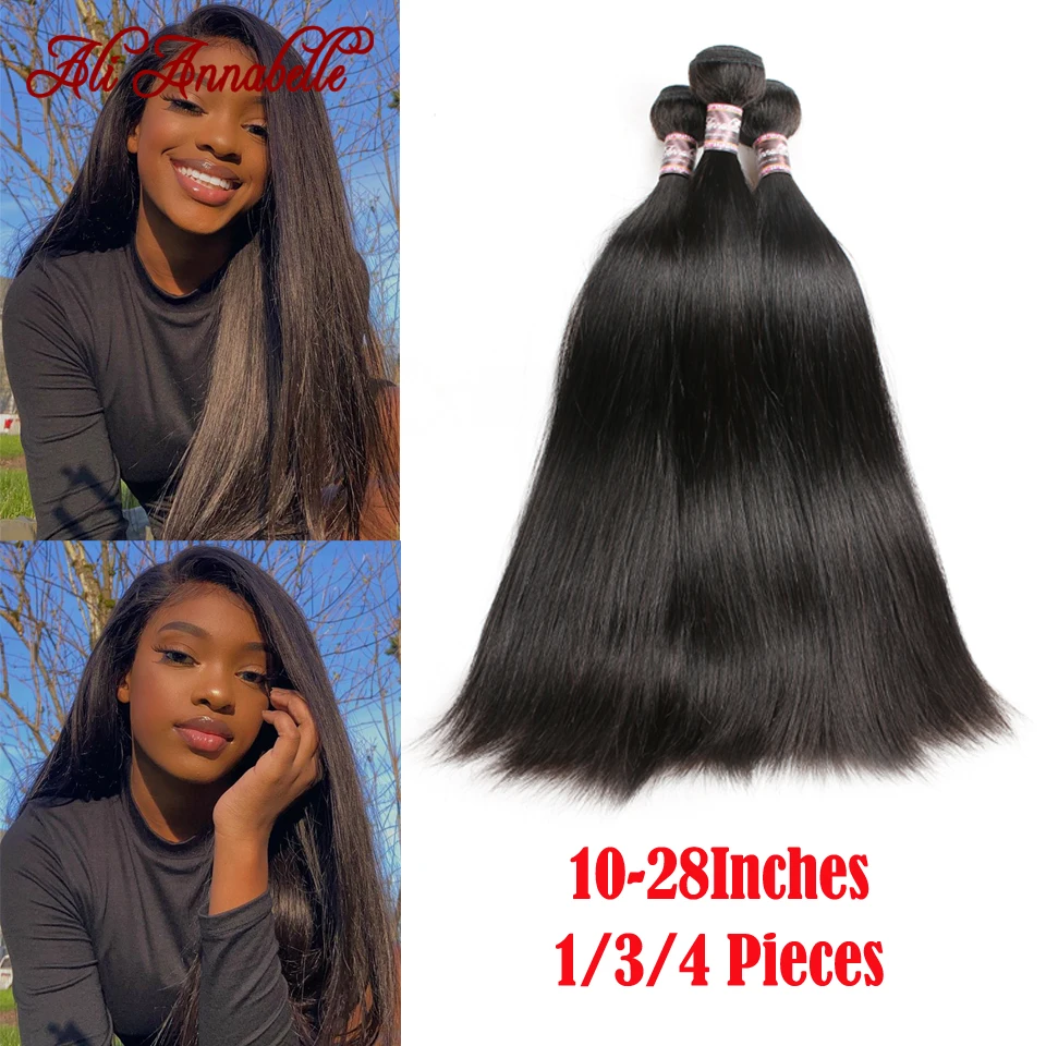 Ali Annabelle прямые волосы, пряди, бразильские волосы, плетение, пряди, 100% человеческие волосы, пряди, Remy волосы, плетение, 1/3/4 шт, натуральный цвет