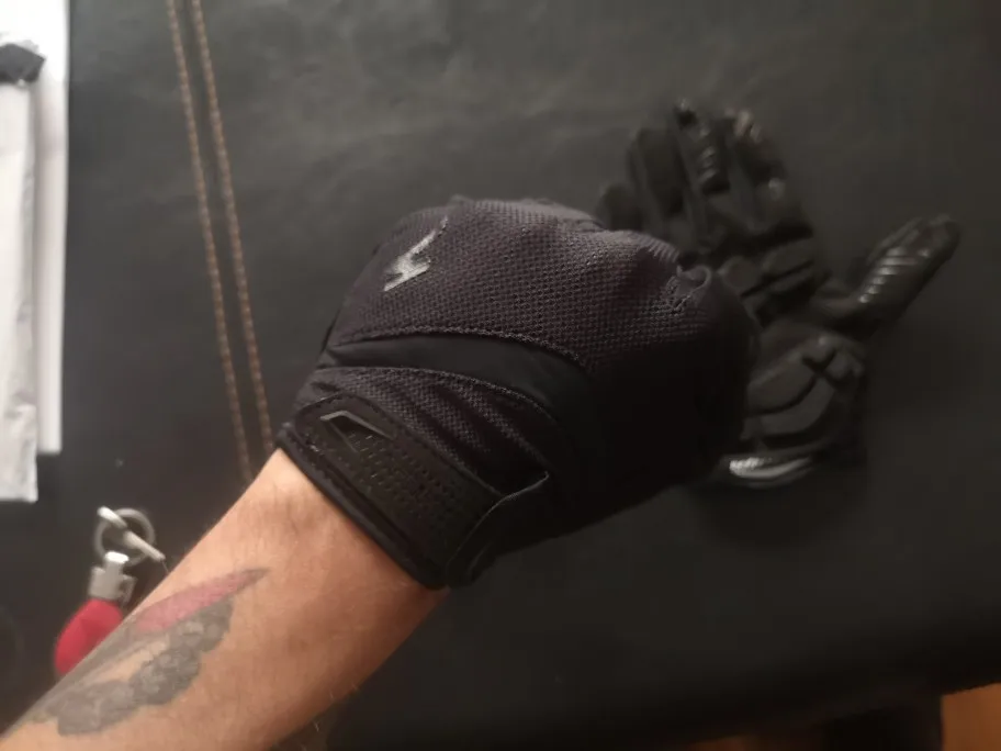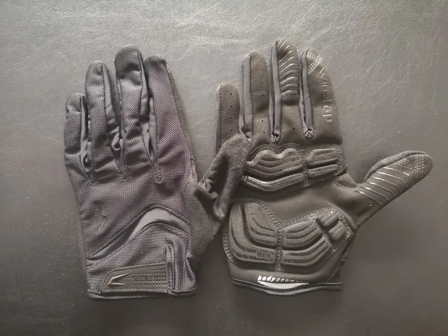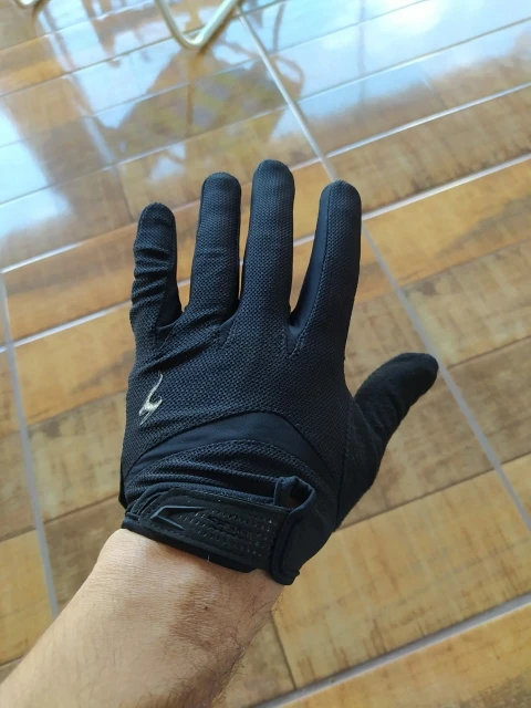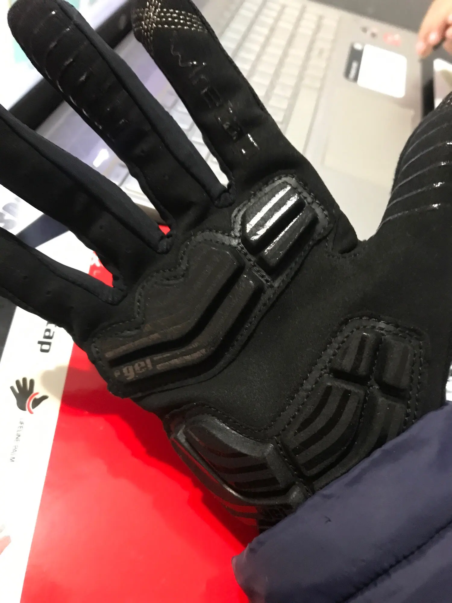 Перчатки с хорошей защитой на ладонях. Протестировано на дороге по трекам 60 км и идеально. Хотя они длинные, они не зимние перчатки. Ладони из "кожи" и гелевых защит и верхняя часть ткани, которая позволяет воздуху пройти.