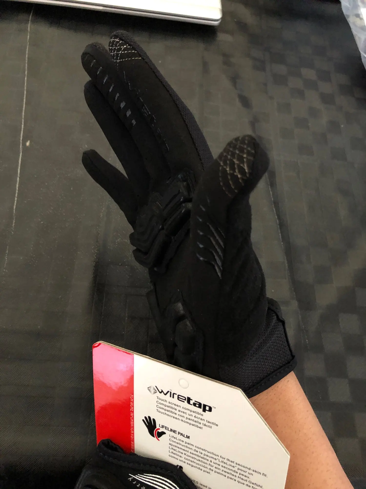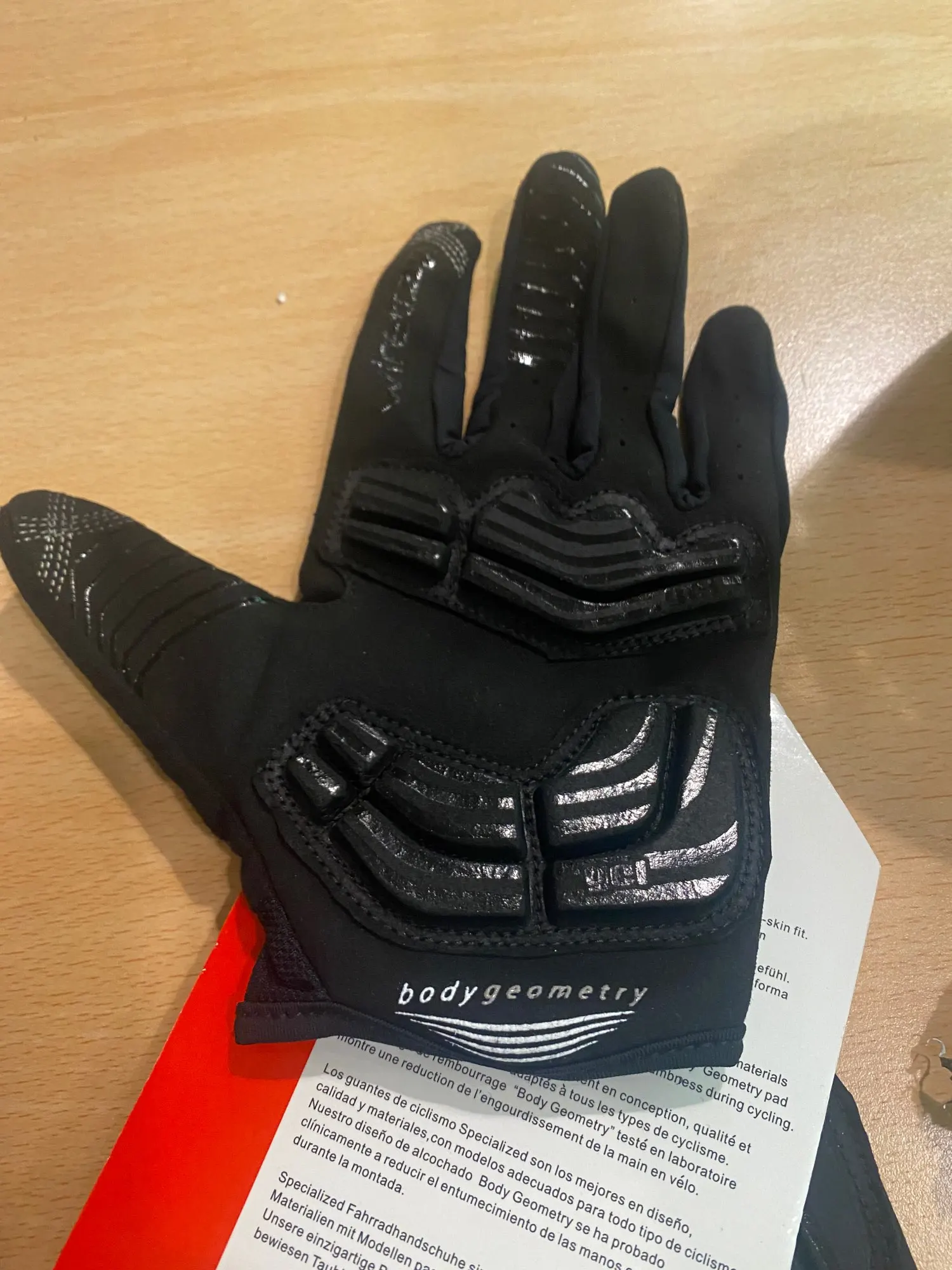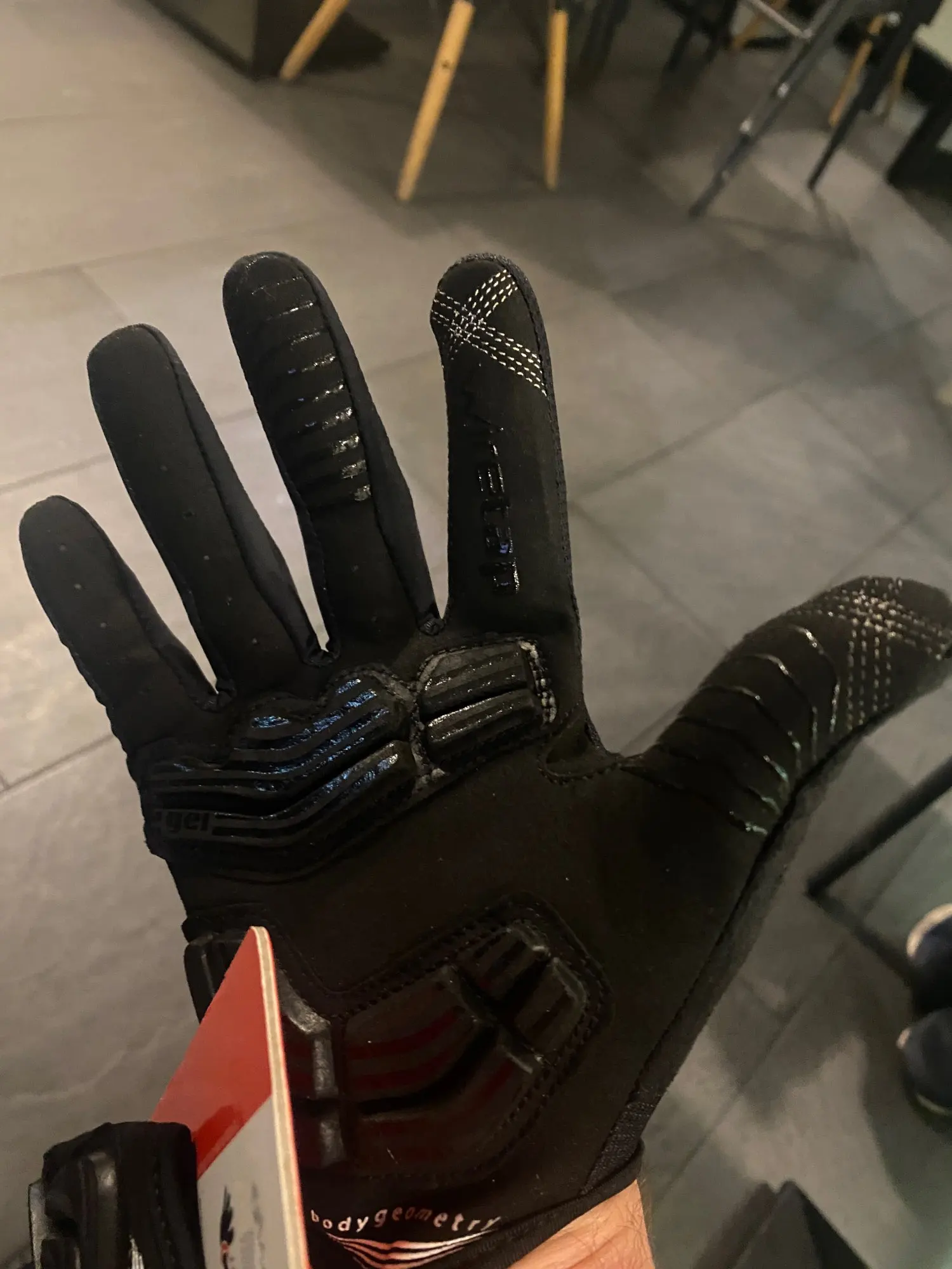 Перчатки с хорошей защитой на ладонях. Протестировано на дороге по трекам 60 км и идеально. Хотя они длинные, они не зимние перчатки. Ладони из "кожи" и гелевых защит и верхняя часть ткани, которая позволяет воздуху пройти.