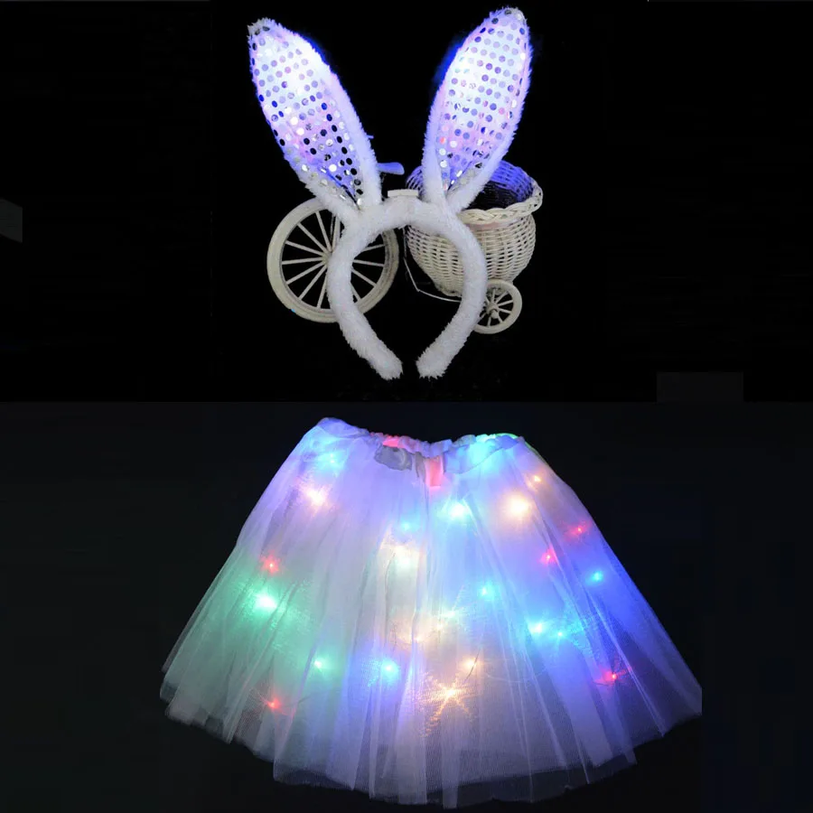 Женская юбка-пачка со светодиодсветильник кой, Яркий Рождественский костюм кролика, повязка на голову с ушами, юбка на день рождения, новинка 2022