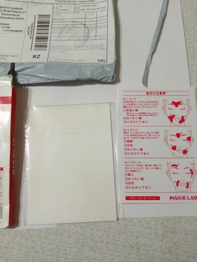 Доставка 1.5 месяца. Пришло все то, что заказывала. 24 длинных наклейки и 27 для межбровья. Коробочки были специально смяты, чтобы посылка была меньше. Сами листы с наклейками запакованы в прозрачный пакетик, поэтому помятость коробок никак не помешала. Наоборот, зато положили в почтовый ящик и не нужно было идти на почту. Наклейки однозначно тоньше, чем тейп или пластырь. О качестве и эффективности пока сказать ничего не могу. Позже дополню отзыв. Спасибо!