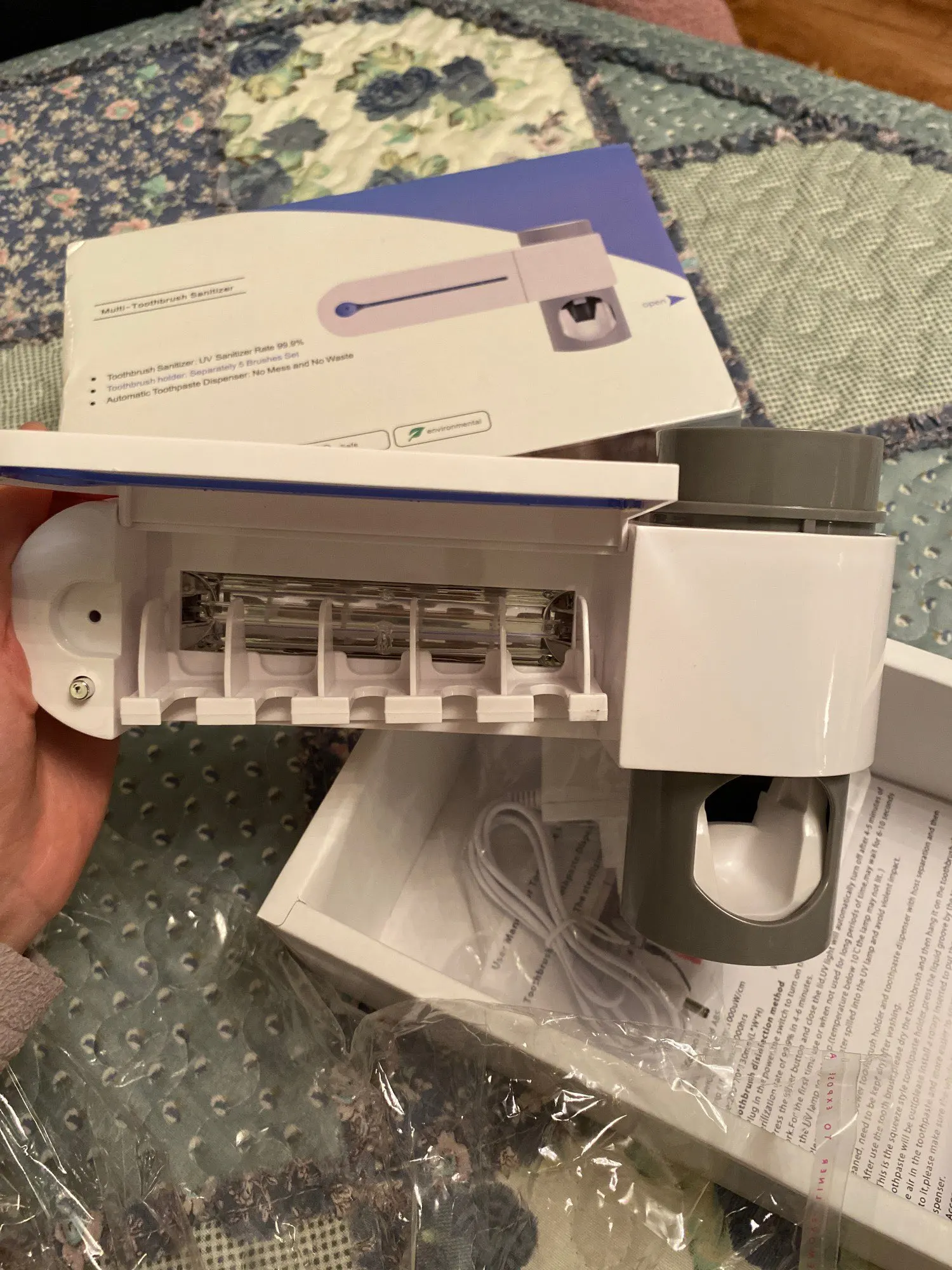 Заказ пришел вовремя, всё целое, упакован в оригинальную коробку. Вид соответствует фотографиям у продавца. Есть ряд нюансов они не критичные, но общее впечатление подпортило:1) после того как я установил держатель для зубных щеток к стене, то выяснилось, что он находится под небольшим наклоном, щетки съезжали к крышке. Так что пришлось хэндмэйдить; 2) у меня электрические щетки, и головка с щетинкой там достаточно маленькая. Паста постоянно ложится не на саму щетину, а на ручку зубной щетки. Нужно какое то время тренироваться, что бы паста ложилась так как нужно. В остальном претензий нет. Материал пластика довольно хороший. сделано не на 3 месяца эксплуатации. Так что я поставил, 5