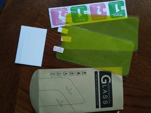 шло долго.пришла пара пленок.одну наклеил,вроде норм..салфетка и шпателёк в комплекте.