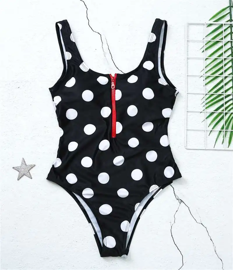 Женский купальный костюм с лямкой на шее, черный купальник в горошек с пуш-ап, монокини большого размера, 2019