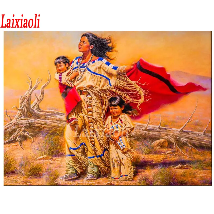 Алмазная вышивка, наборы для вышивки крестиком индейских женщин, алмазная живопись, картины для мамы и ребенка, Алмазная мозаика 5d