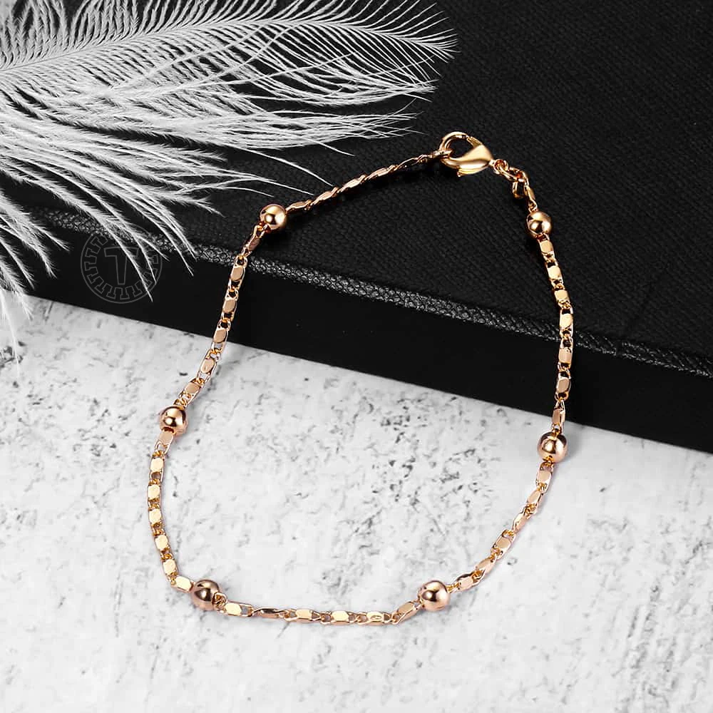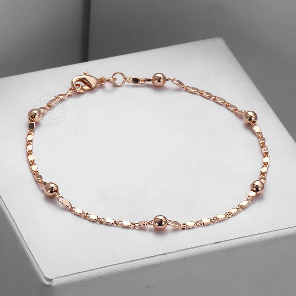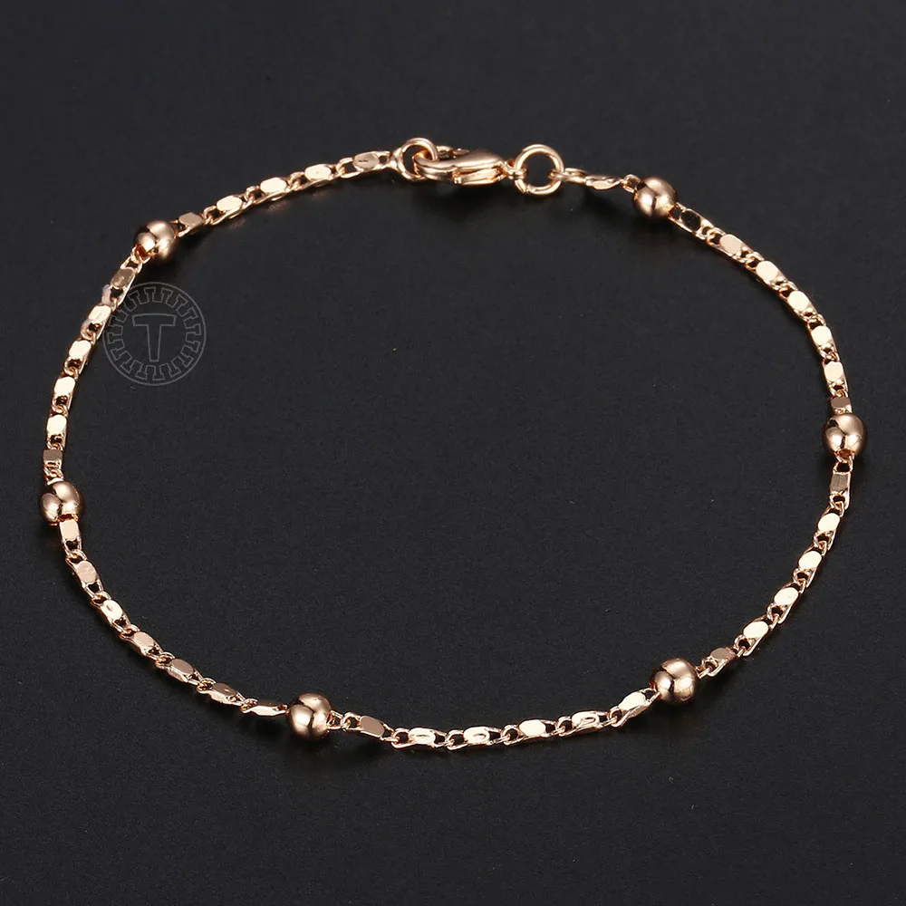 Цепочки с бусинами для женщин и девушек, браслеты из розового золота 585 пробы, модные ювелирные украшения 2 мм, 20 см, цепочка DCB11