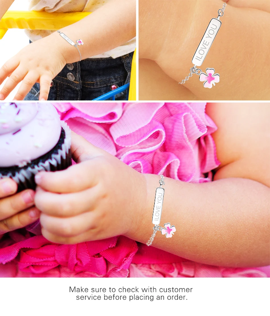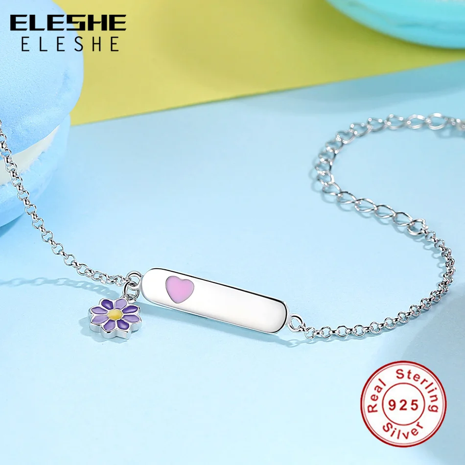 Детские браслеты ELESHE с именем под заказ, браслет с подвеской и гравировкой из стерлингового серебра розовое эмалированное сердце пробы, подарочное Ювелирное Украшение, 925