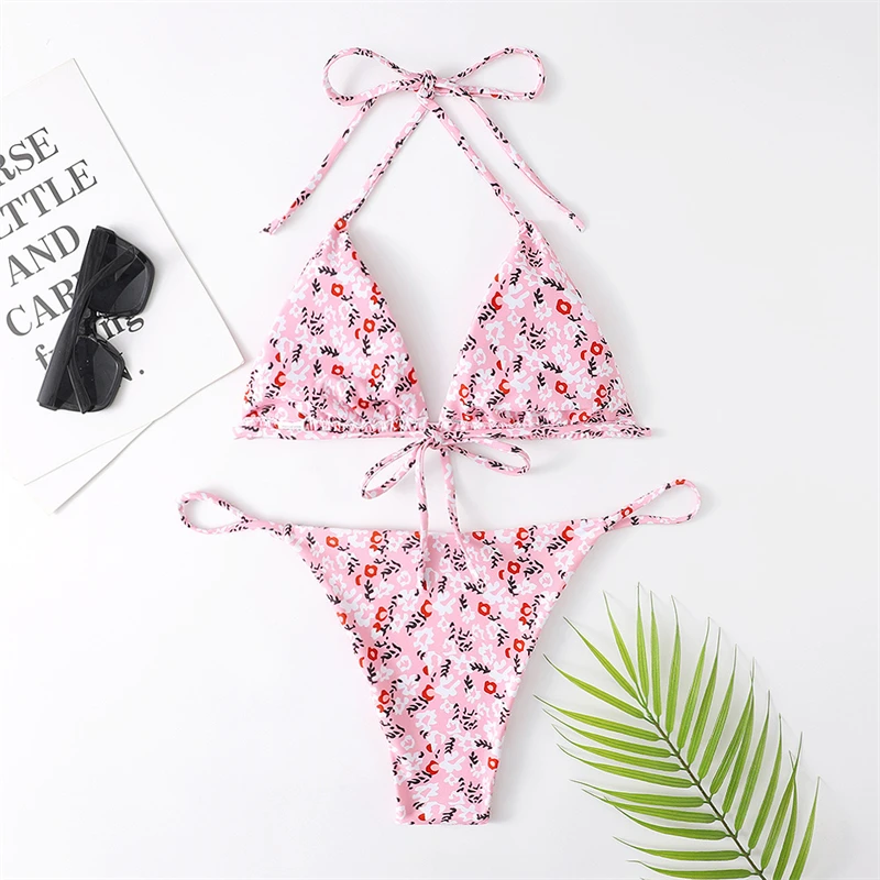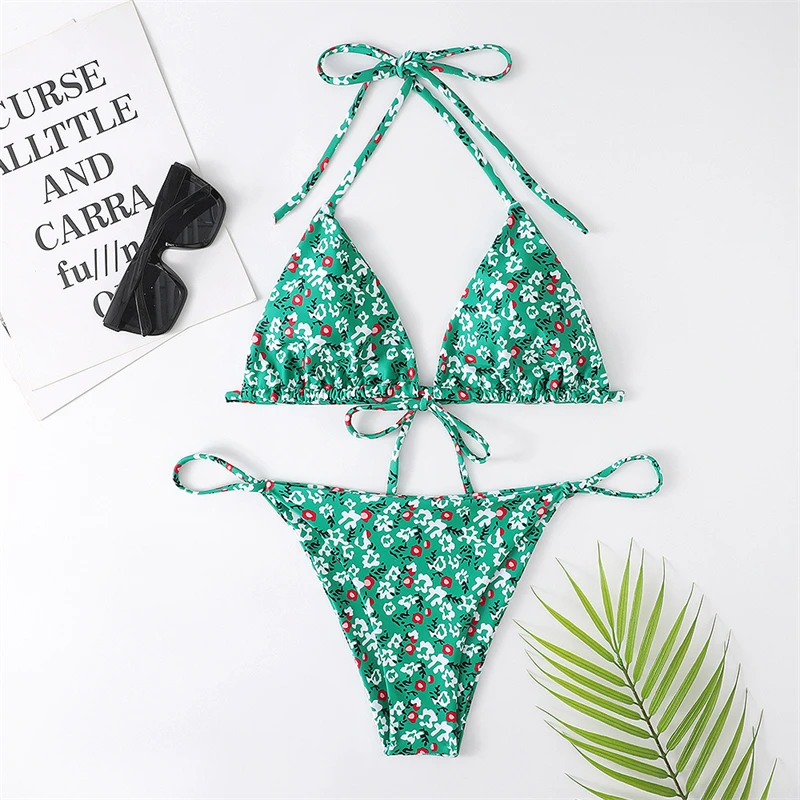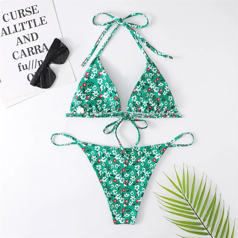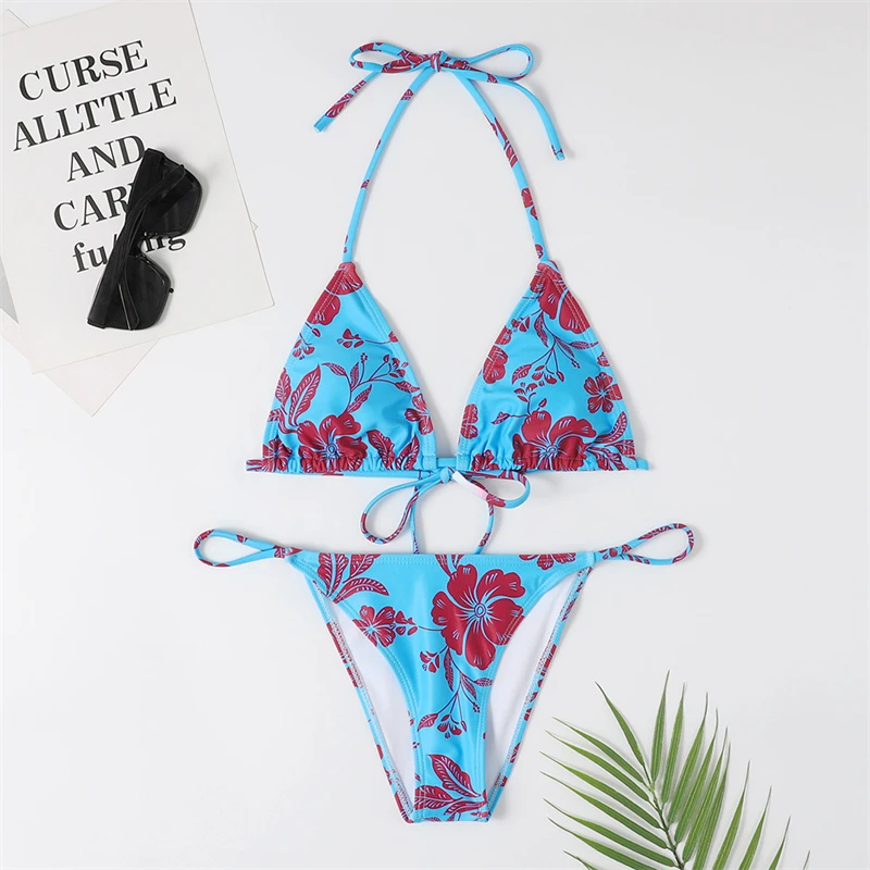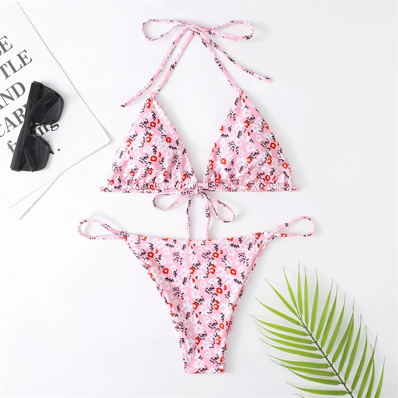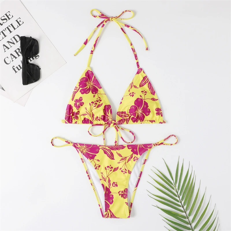 Женский купальник пуш-ап с высокой талией, с цветочным принтом