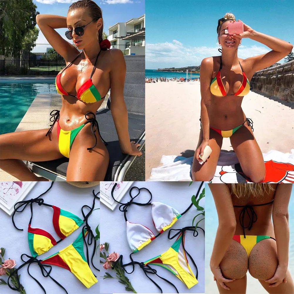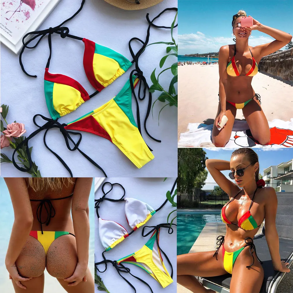 Женский Цветной купальник-бикини пляжный купальник Танкини 2019Размеры таблицей: