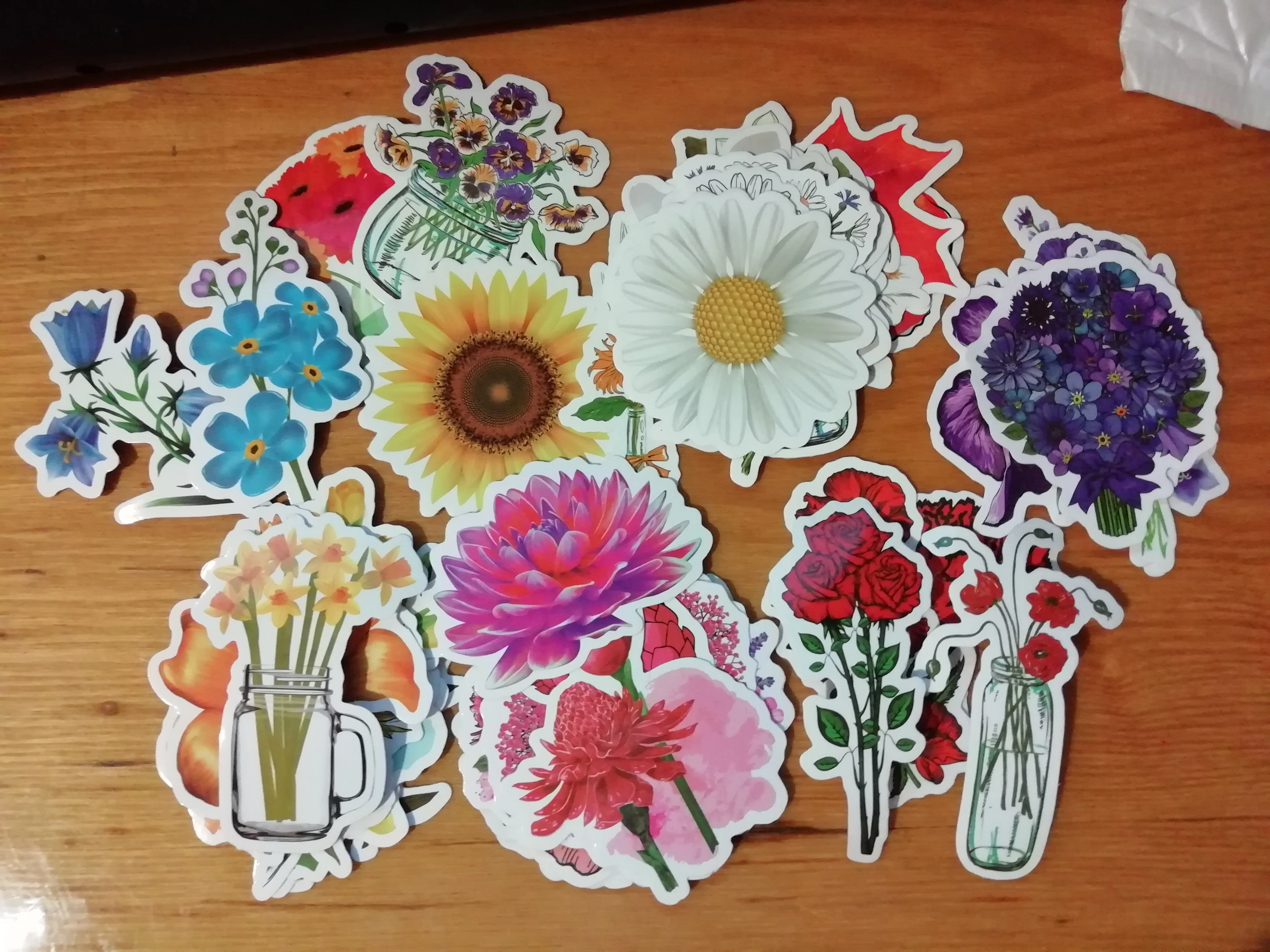 Посылка включает:50 шт. цветочных наклеек. Не повторяется.