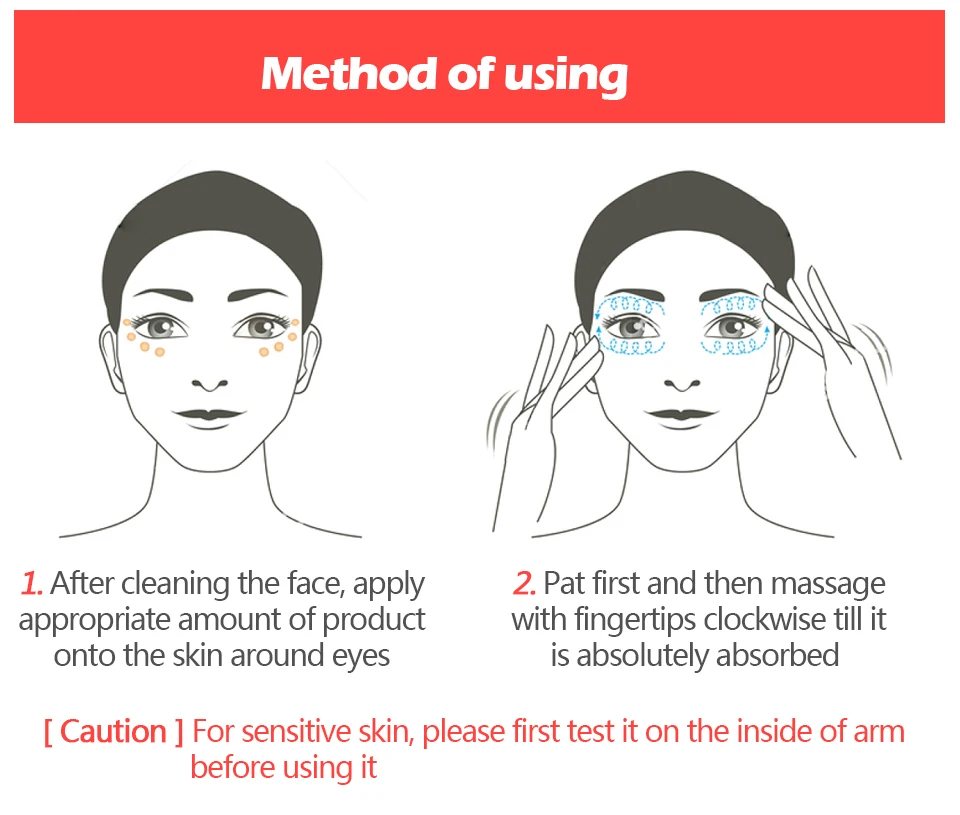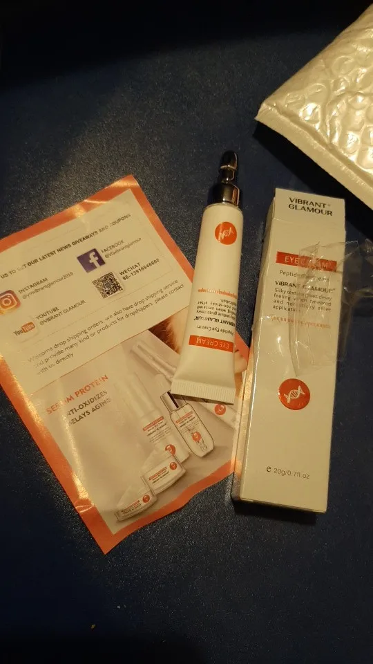 Продавец отправил товар быстро, он был более месяца на почте, но это не вина продавца. Все они были хорошо упакованы, в индивидуальной коробке и защищены. Я попробовал и испытал мягкую кожу, но, чтобы заметить реальные изменения, я должен продолжать использовать их. Аппликатор специально для глаз, он становится простым в использовании. Все приходит с датой, до сих пор нет проблем, я проверю, является ли это эффективным с течением времени. До сих пор я рекомендую