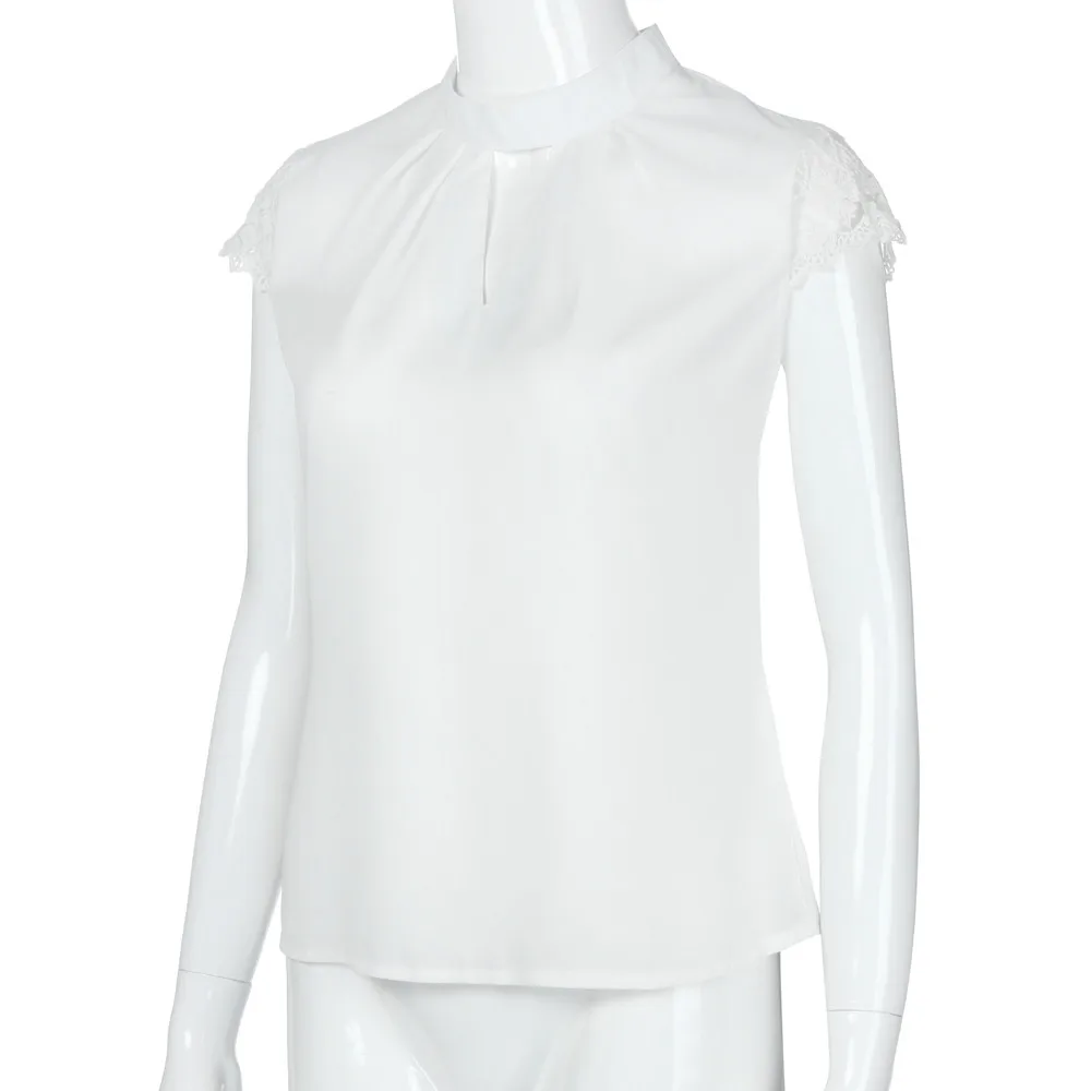 Женские сексуальные блузки Feitong, летние повседневные ажурные Шифоновые Топы с коротким рукавом и кружевом, модные женские топы большого размера