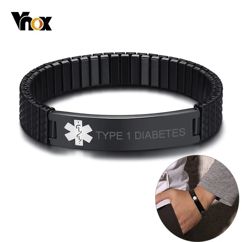 Vnox Тип 2 диабет медицинское оповещение ID браслеты для мужчин на ...