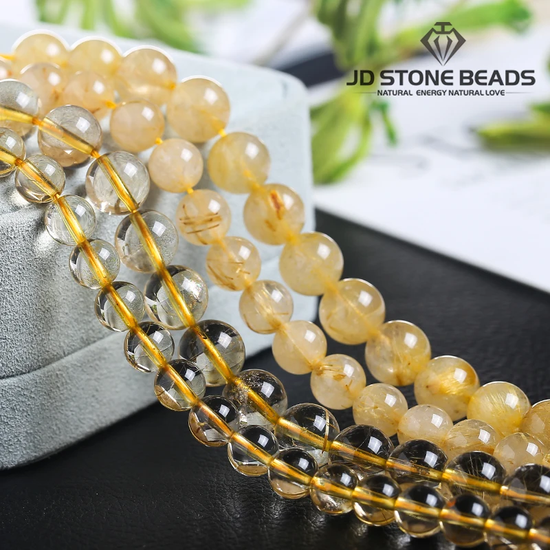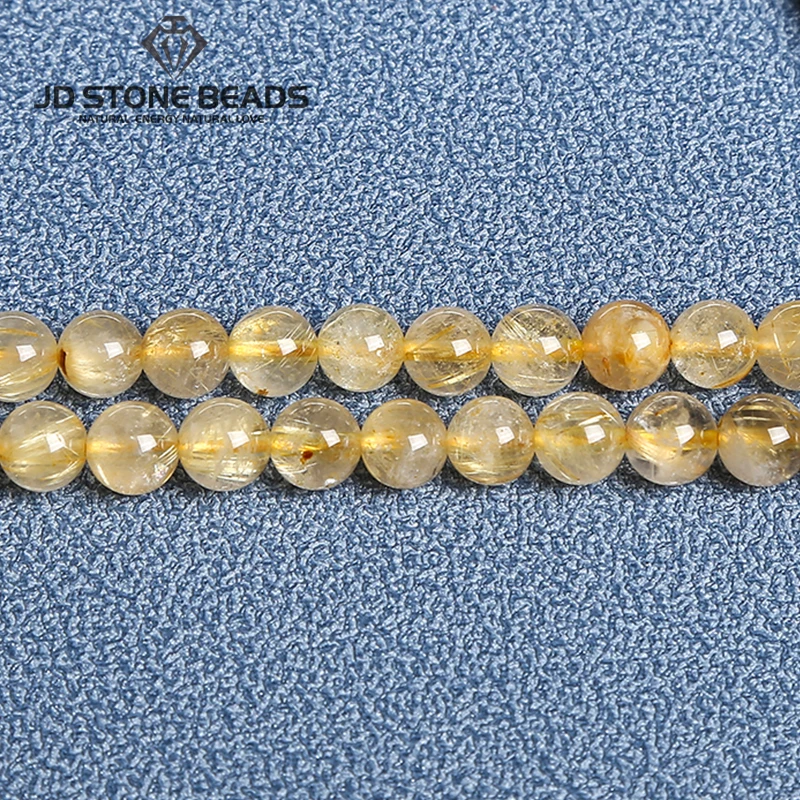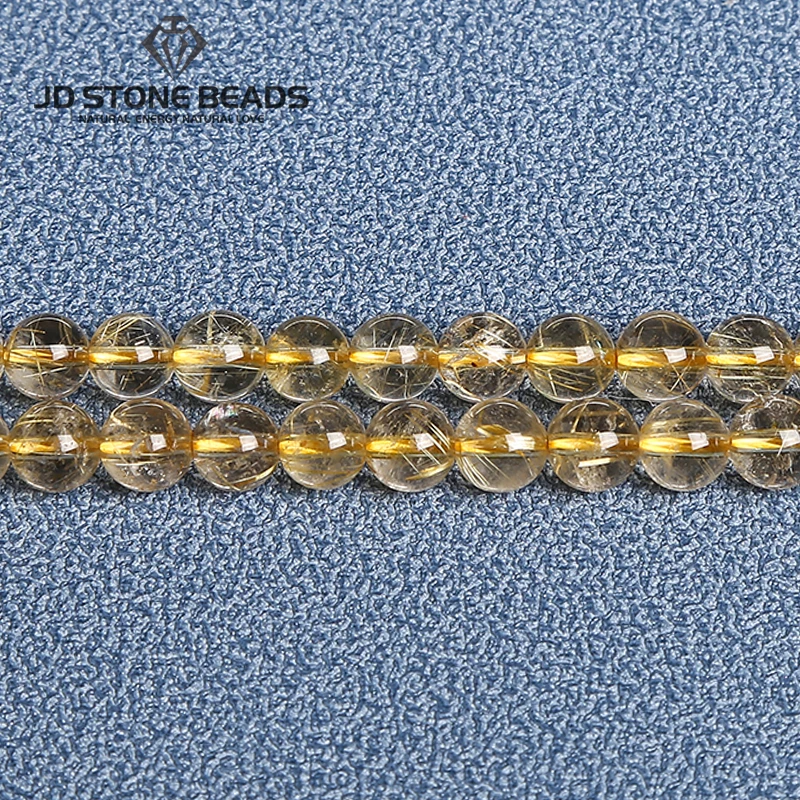 Бусины с кристаллами для ювелирных изделий сделай сам, круглые бусины из рутилированного кварца, натурального золота, высокого качества, 6, 8, 10 мм