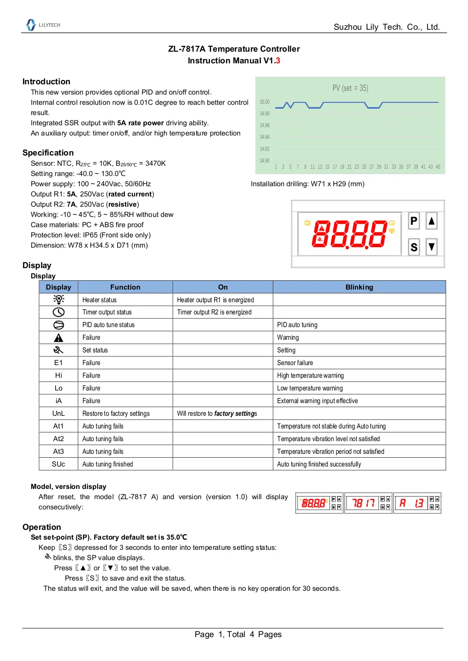 ZL-7817A, PID регулятор температуры, термостат, со встроенным SSR, 100-240Vac источник питания, CE, ISO, Lilytech
