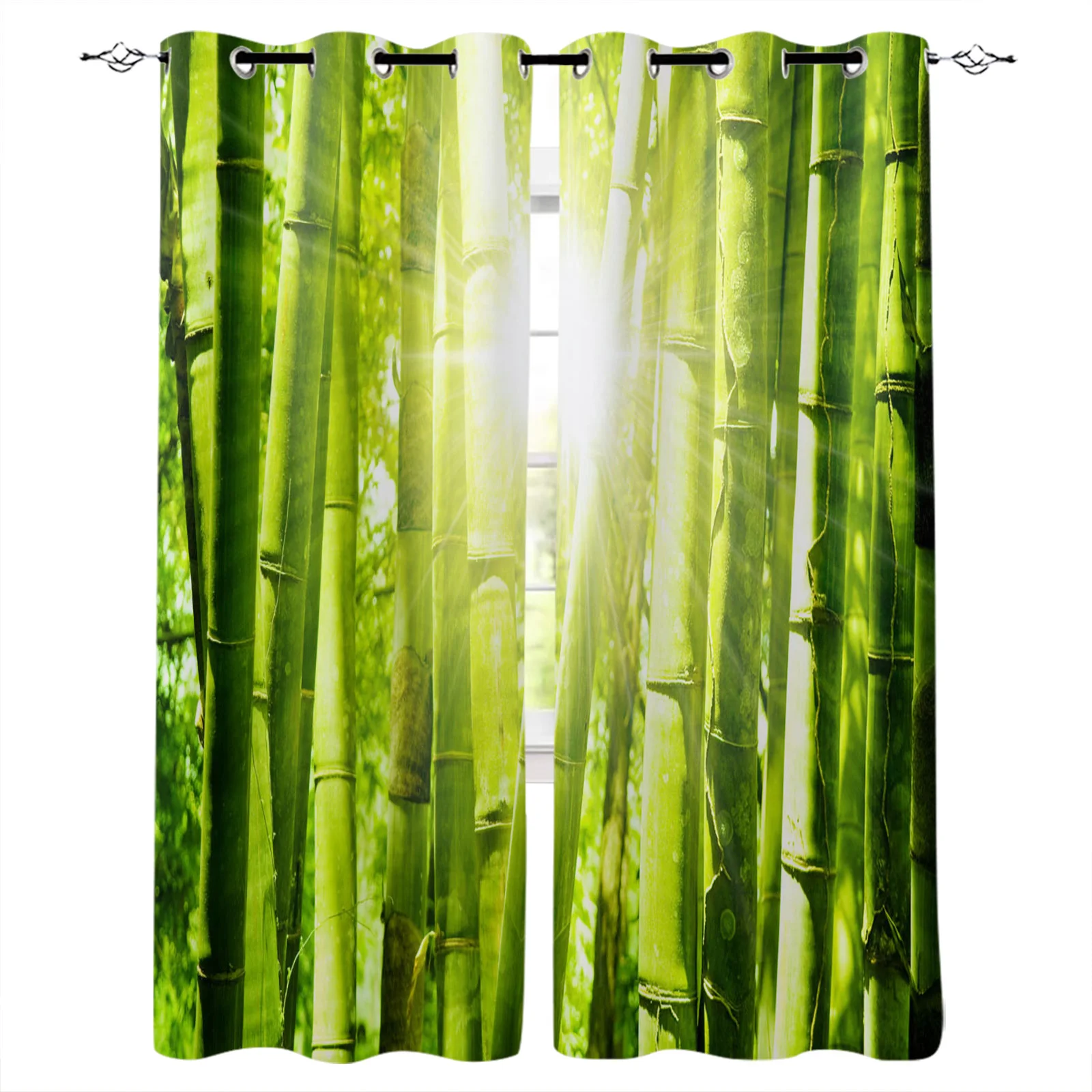 Зеленая занавеска s, Азиатский бамбуковый лес с утром, солнечным светом и солнцем, деревья, джунгли, сцена, занавеска для гостиной, спальни