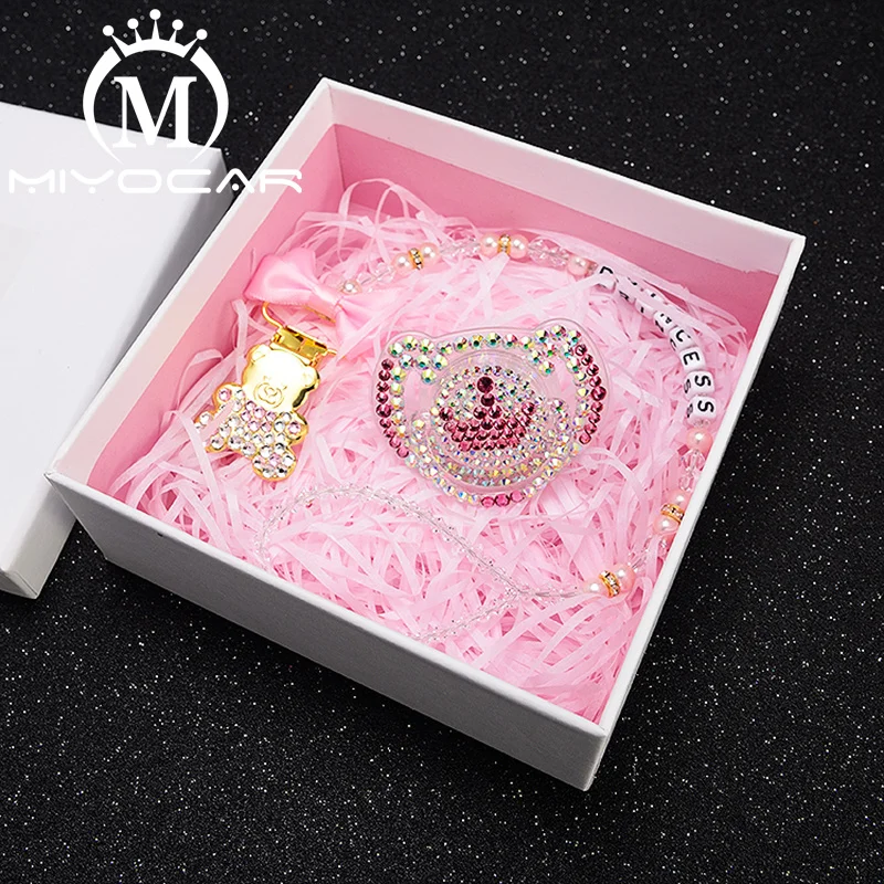 Новый стиль! -----С возможностью выбора любого имени может сделатьХрустальные бусины с блестящими заколками медведя и супер шикарной пустышкой