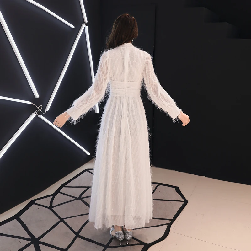 Новинка 2022, белое ТРАПЕЦИЕВИДНОЕ ПЛАТЬЕ weiyin с высоким воротником для выпускного вечера, сексуальные женские вечерние платья с длинным рукавом WY1510