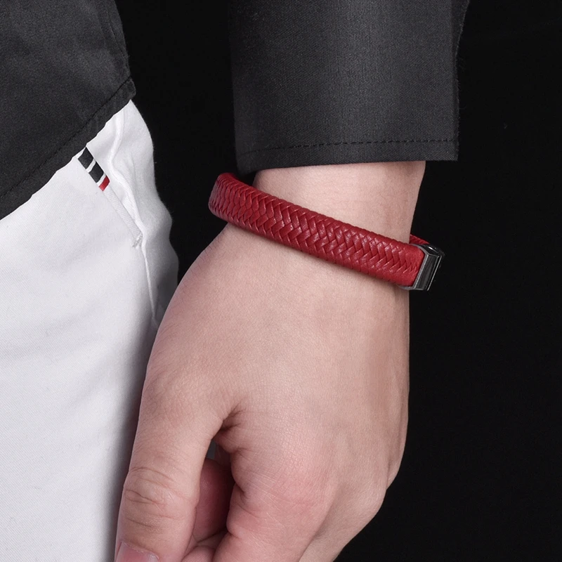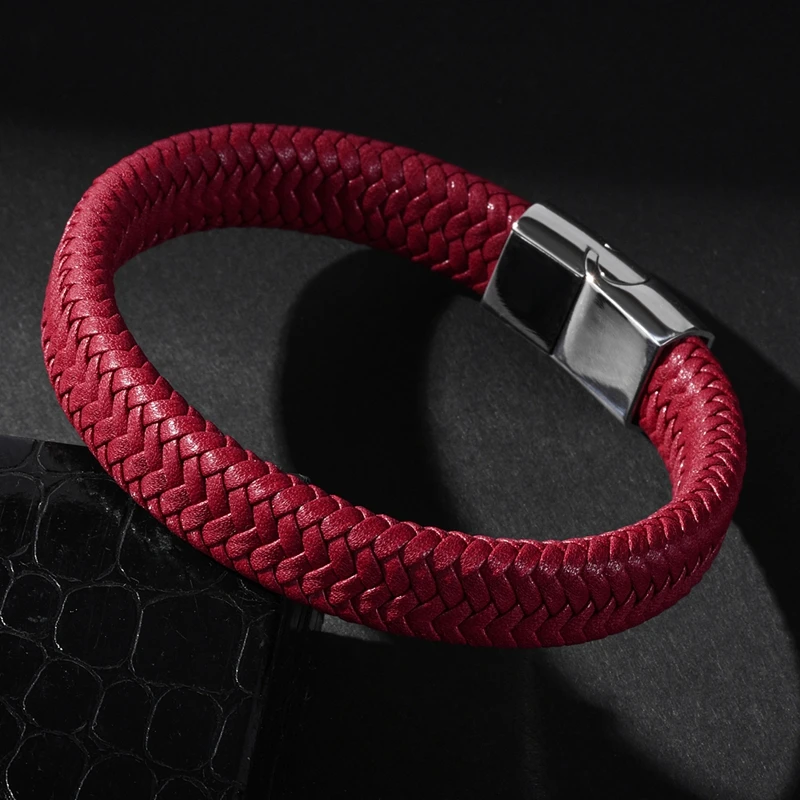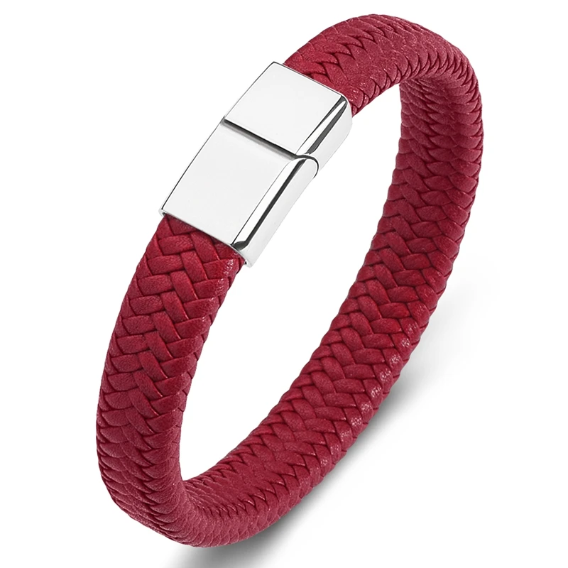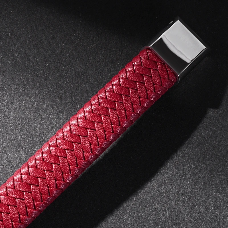 Браслет MOZO из кожи с магнитной застежкой Женский, модное Ювелирное Украшение в стиле панк, высококачественный браслет из красной плетеной кожи с магнитной застежкой из нержавеющей стали, подарок 161
