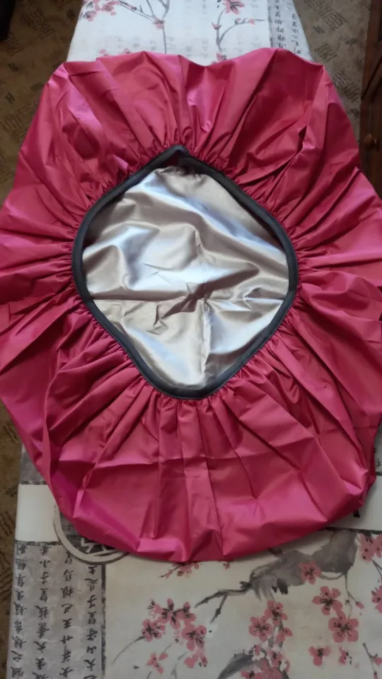 Чехол из толстой "серебрянки" на жесткой пришитой резинке. Очень маленький. Брала на рюкзак 60 л, но он с трудом налезает даже на 45 л. Цвет сильно отличается от картинки. Разочарована.