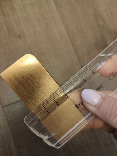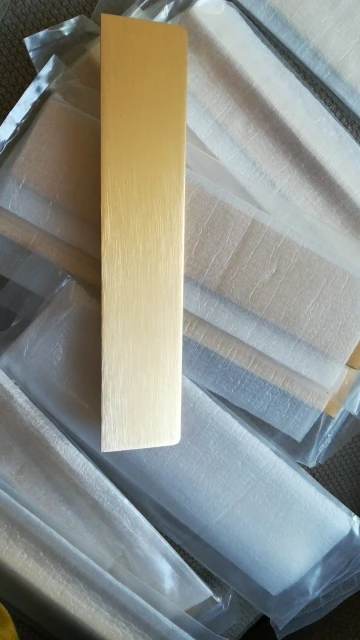 ручка неплохого качества, правда есть пару небольших царапин, но видны при близком рассмотрении. действительно брашированная, но золото не слишком жёлтое, что порадовало (заказывала у этого же продавца другую, та оказалась более жёлтая, постаралась передать на фото)
