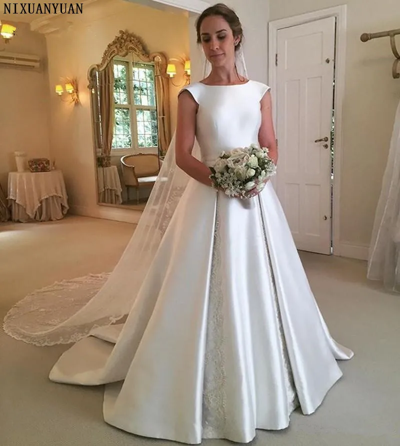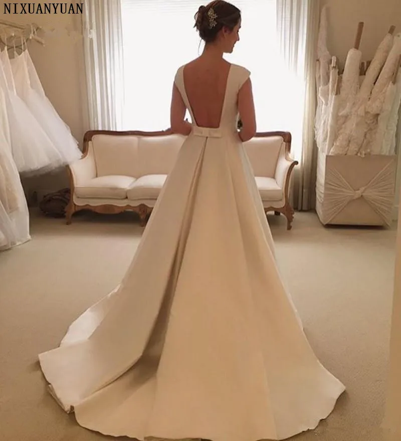 Простое атласное свадебное платье Sevintage, женское платье с откры...