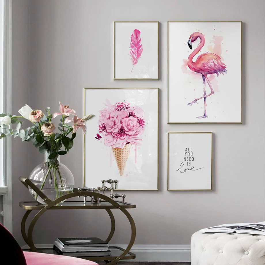 Розовая роза цветок Фламинго художественная стена с цитатой Холст Картина скандинавские плакаты и принты настенные картины для гостиной спальни Декор
