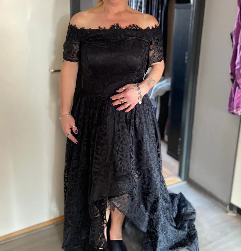 Платье Свадебное ТРАПЕЦИЕВИДНОЕ черное с открытыми плечами и кружев...