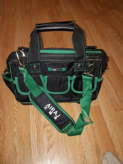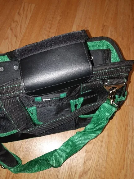 сумка отличная, практично что дно сделано из пластика, можно ставить на грязь и воду. сделана очень хорошо, очень прочная. сумку прислали размером не 18 а 16, положили в подарок клеящий пистолет... после спора вернули 700 рублей, так что норм)))