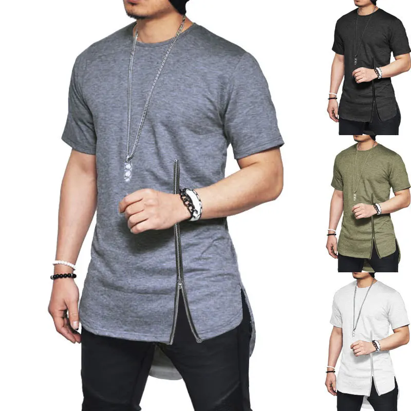 Мужская футболка в стиле хип-хоп, с коротким рукавом, на молнии