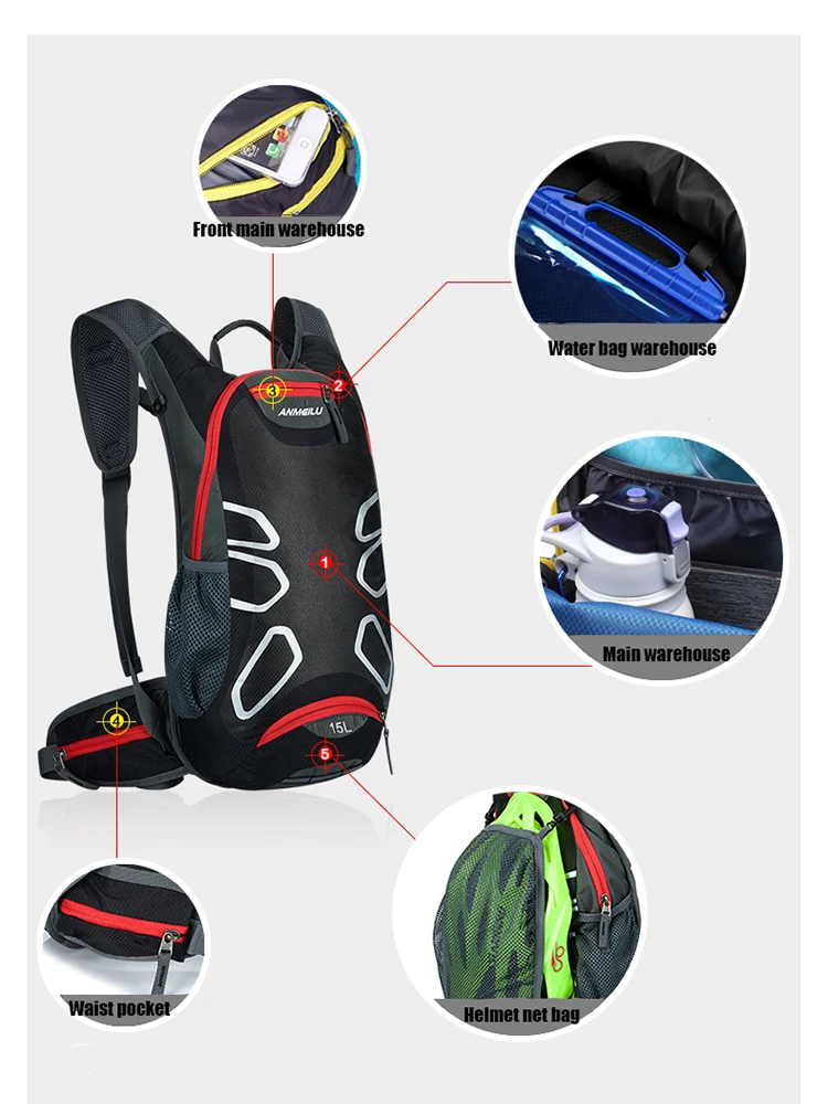 Велосипедный рюкзак, сверхлегкий спортивный рюкзак для езды на горном велосипеде 15 л, велосипедный рюкзак с чехлом от дождя, без сумки для воды
