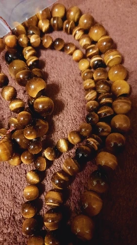 Тигровый глаз как на фотке, очень красиво переливается. Очень красивый. Бусину пока не расскалывала не смотрела настроящий или нет, но у продавца покупаю далеко не первый раз и он никогда еще не присылал подделку, всегда пишет если это имитация. Главное внимательно изучать описание перед покупкой.