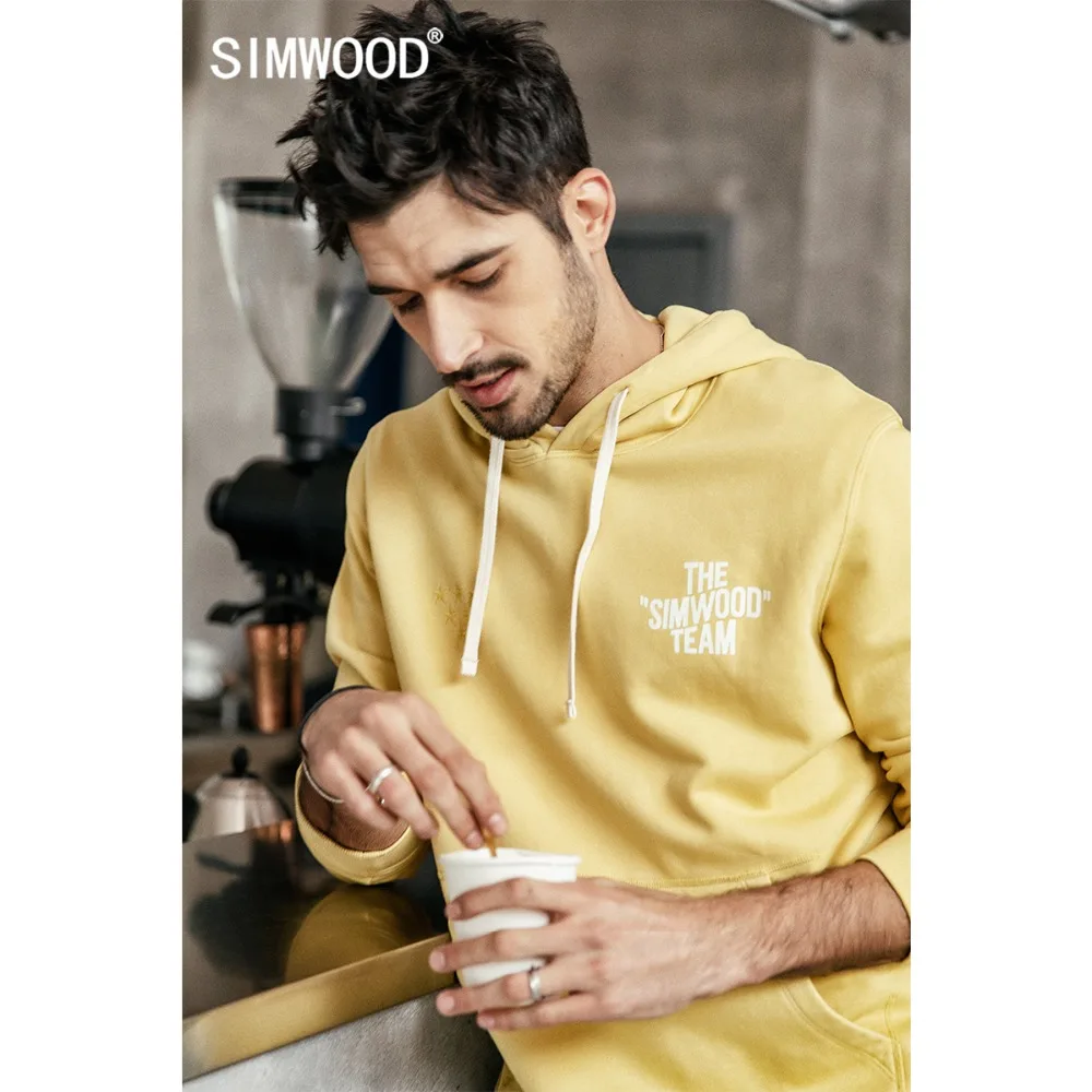 Мужское повседневное худи SIMWOOD, свитшот с капюшоном и надписью из 100% хлопка, новая модель 190139 большого размера на осень, 2019