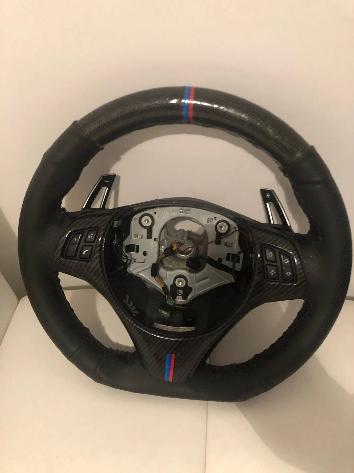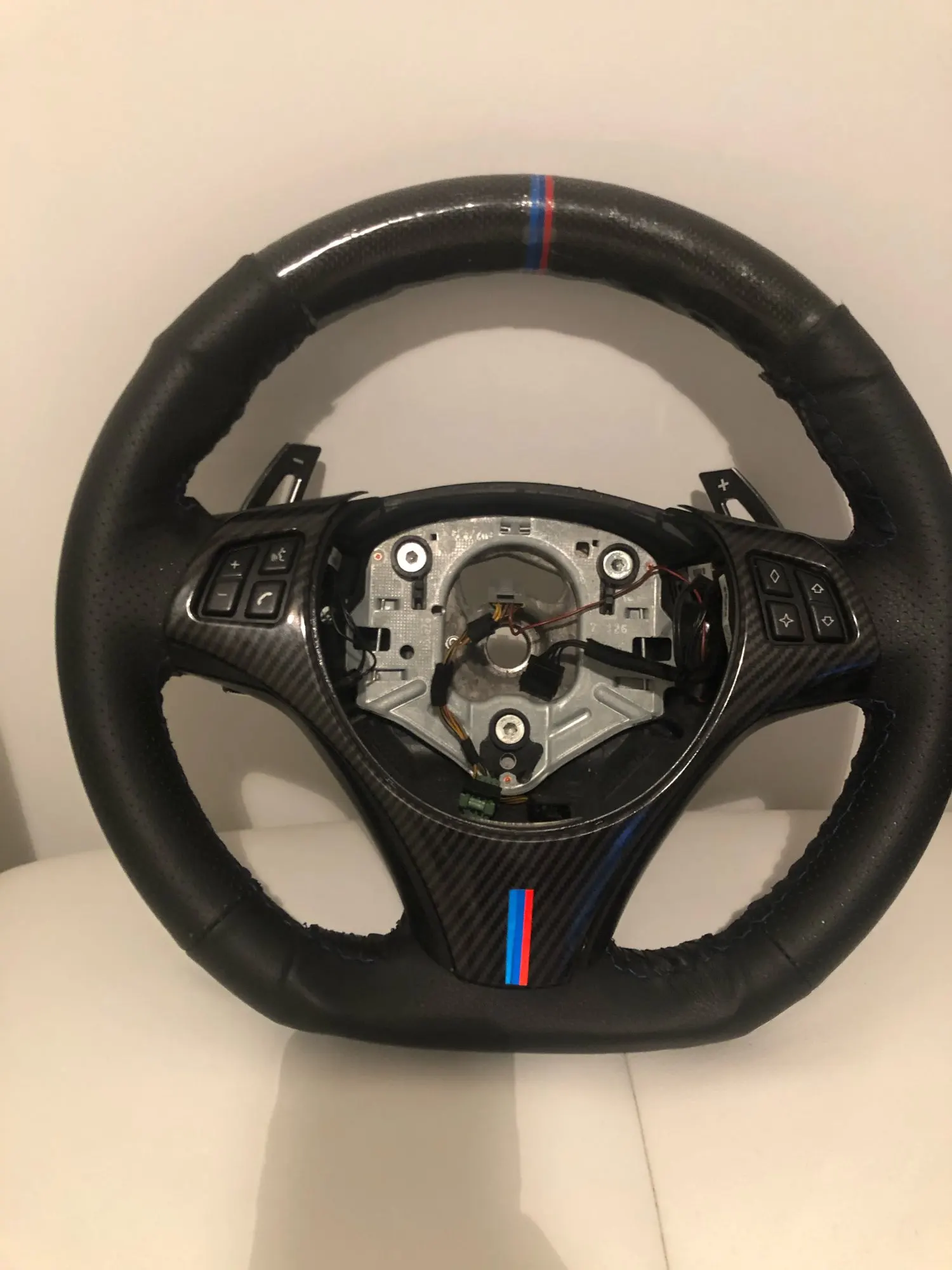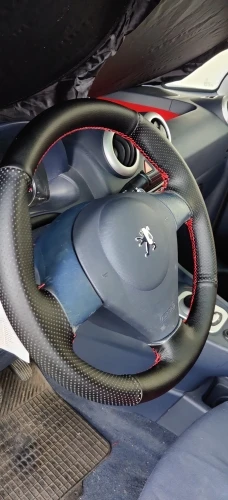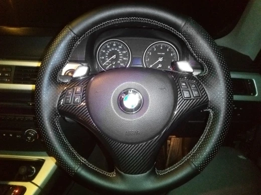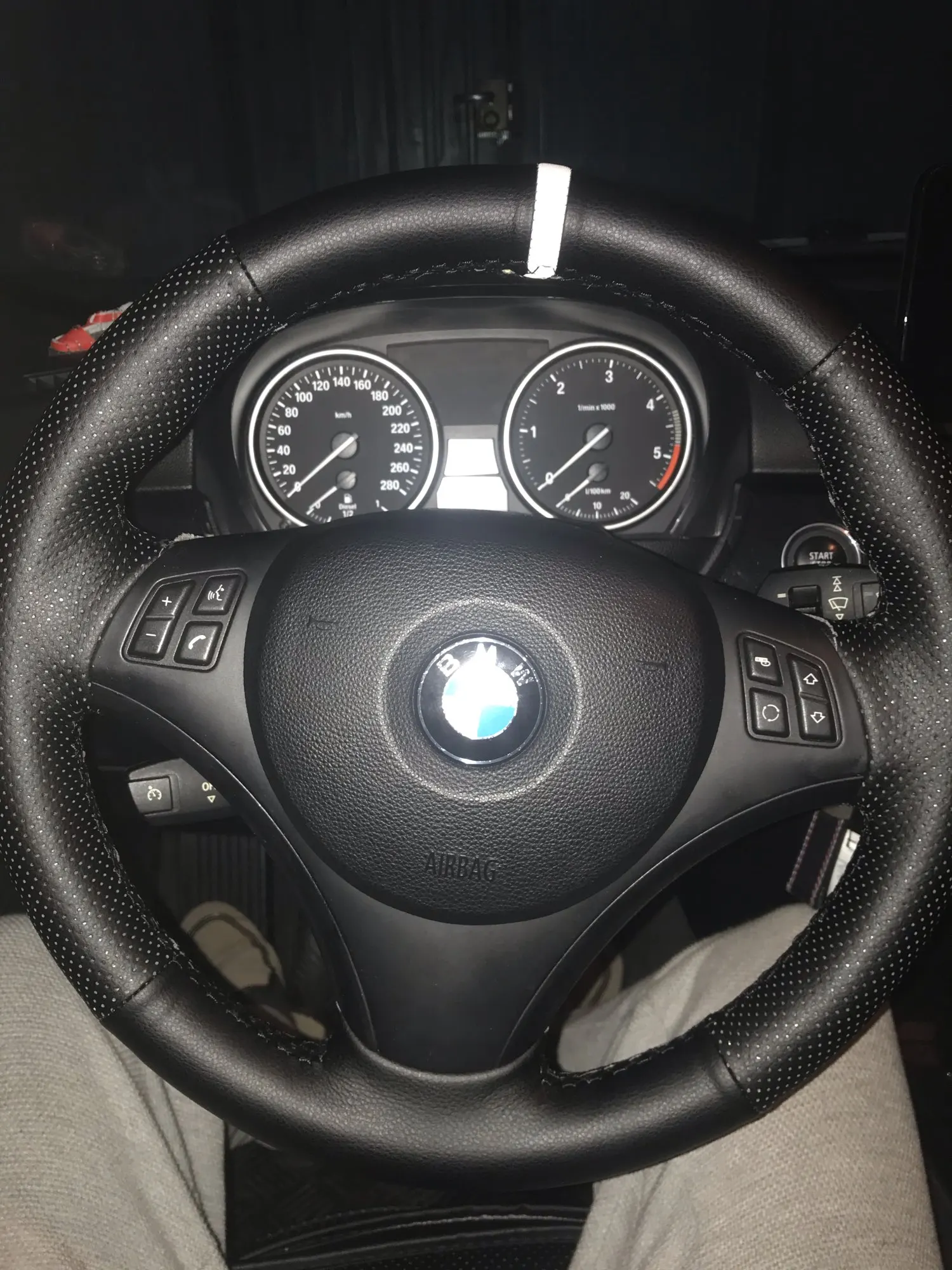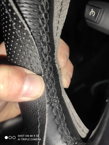 Отличный продукт, кожа хорошего качества. Только небольшие проблемы, это немного узкий для M-Sport руля, которые толще, и синяя строчка, используемая была темно-синий вместо светло-синего для M цветов. Обратите внимание на то, что у меня есть рулевое колесо с плоской подошвой, так что крышка была срезана.