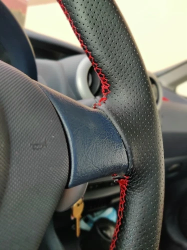 Хорошо, передняя часть руля красивая и чистая. С другой стороны сзади невозможно скрыть части, которые превышают (Скрытые спереди под вставкой). Поворачивая руль, вы почувствуете кусочки кожи, которые ходят вокруг. Так что, быть маньяком, я получил его.