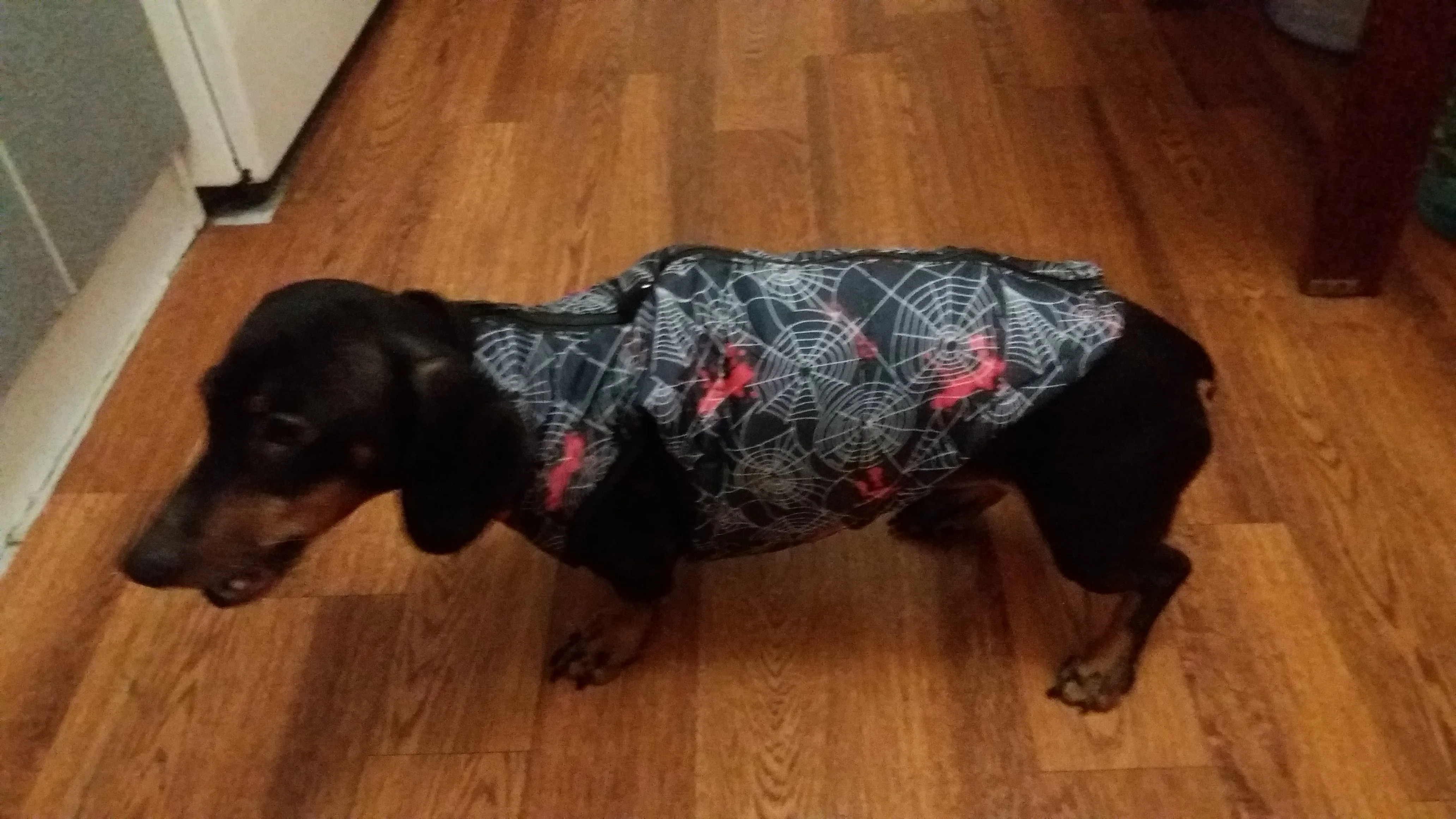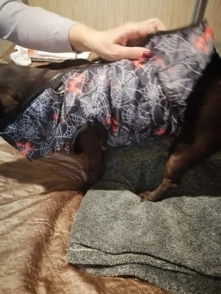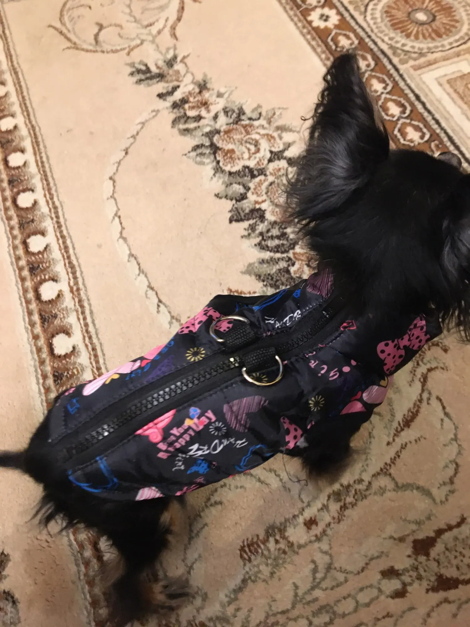 Куртка сама по себе потрясающая, как я и хотела. Может вам повезёт больше. Доставка меньше месяца: заказано 23 января, доставлено 13 февраля. НО на фига класть в заказ куртку со сломанным бегунком, если потенциально мне теперь менять молнию, стоимостью 500₽, если сама куртка 301,51₽? Косяк на фото. Брала по размерам, но оказалась нам пока большой, это не страшно, у меня щенок, подрастёт. На той-терьера 1850 гр велика.