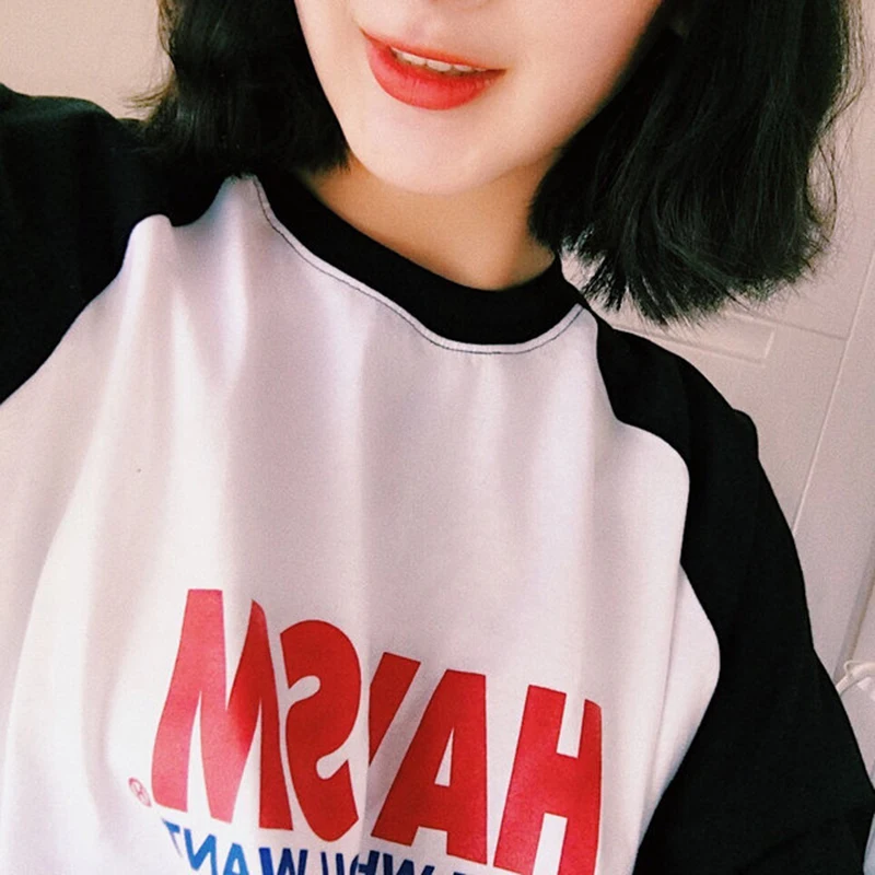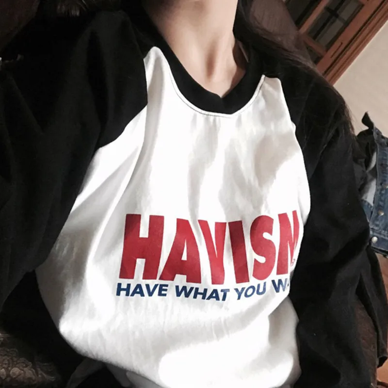 Футболка женская Harajuku, с длинным рукавом и круглым вырезом, в Корейском стиле