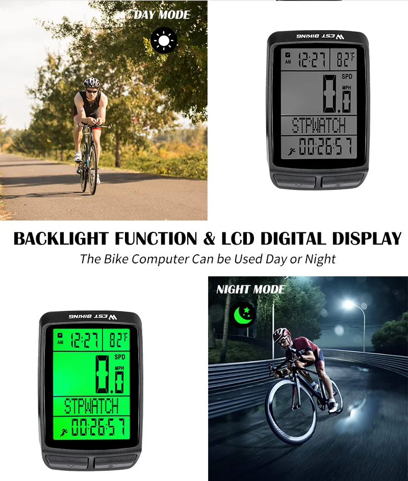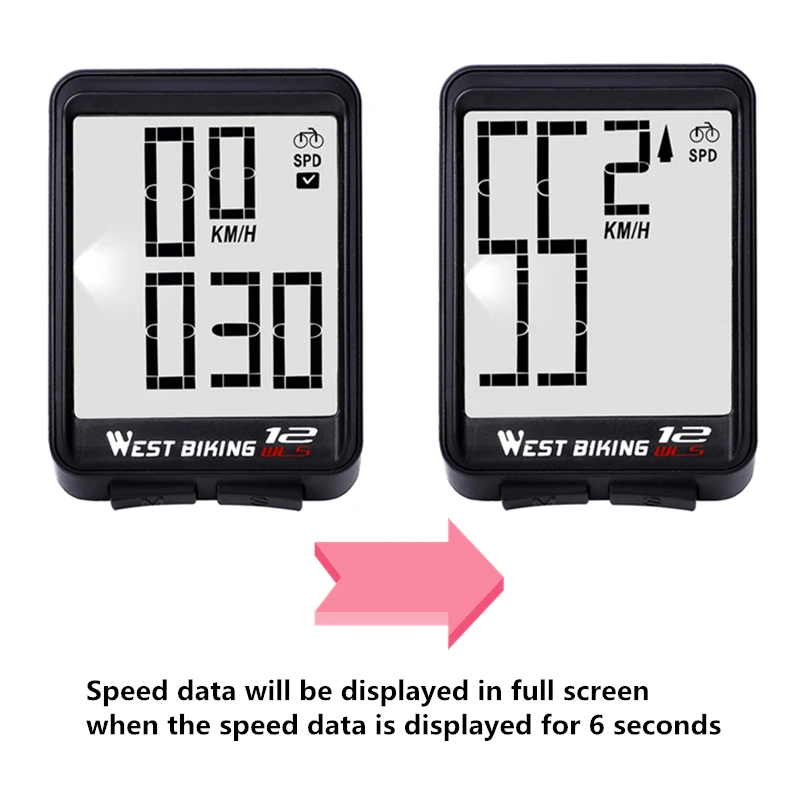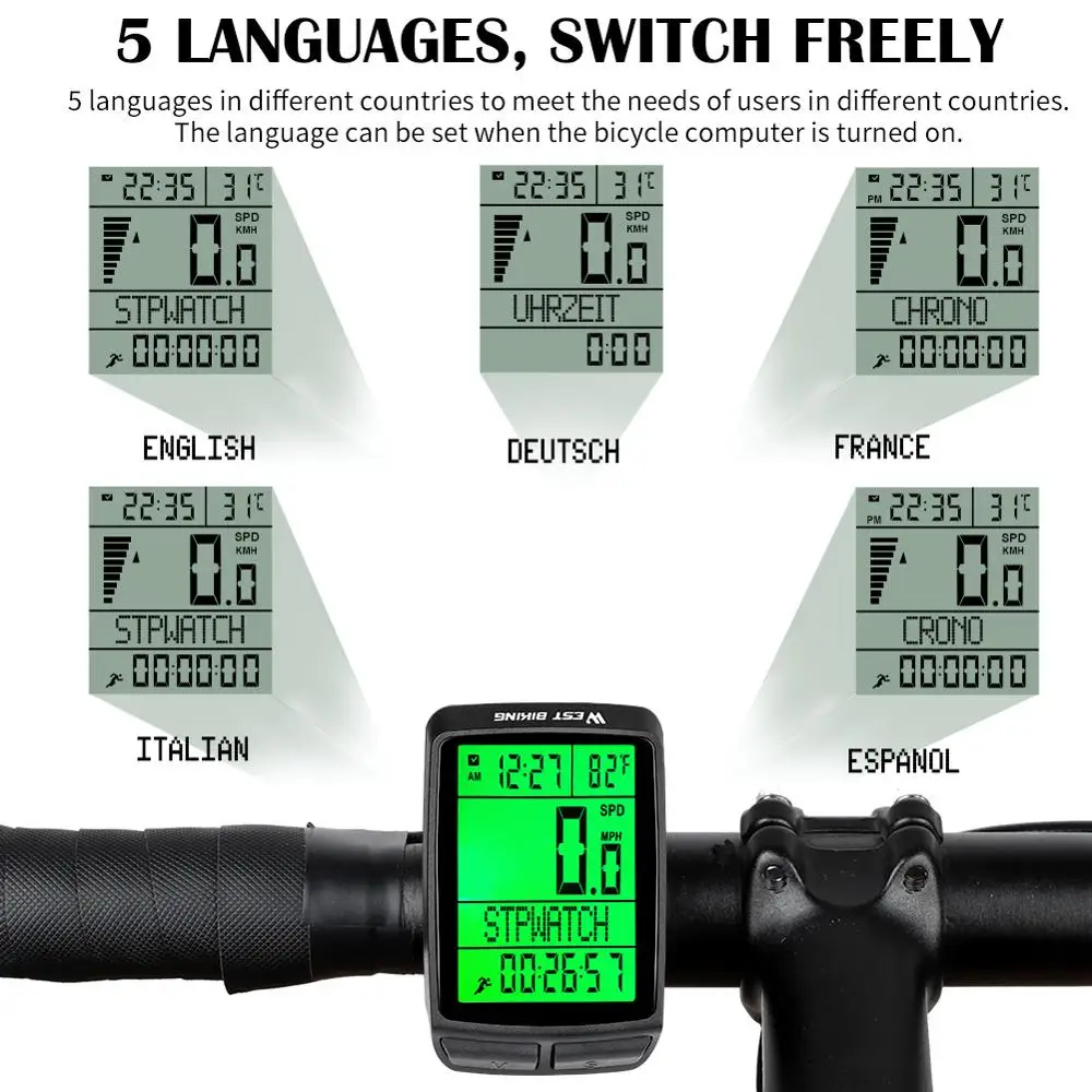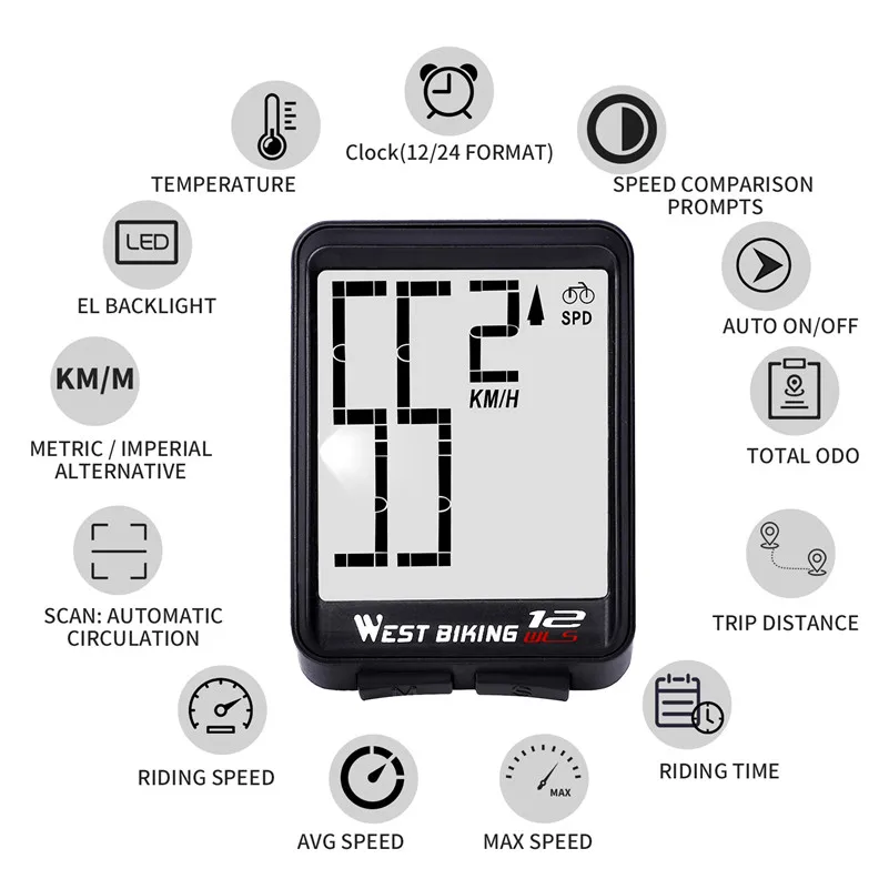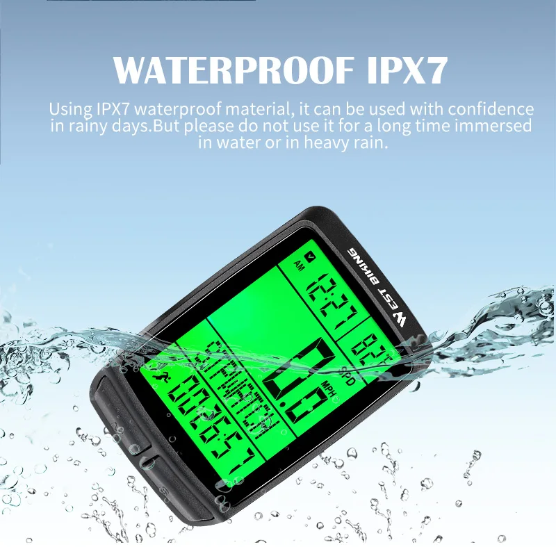 Велосипедный компьютер, беспроводной, водонепроницаемый, с большим экраном WEST BIKING, спидометр, секундомер, подсветка, спидометр для велосипеда