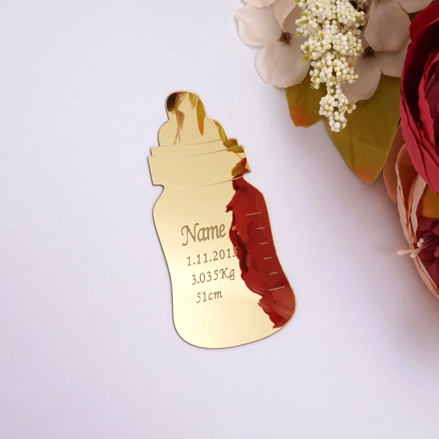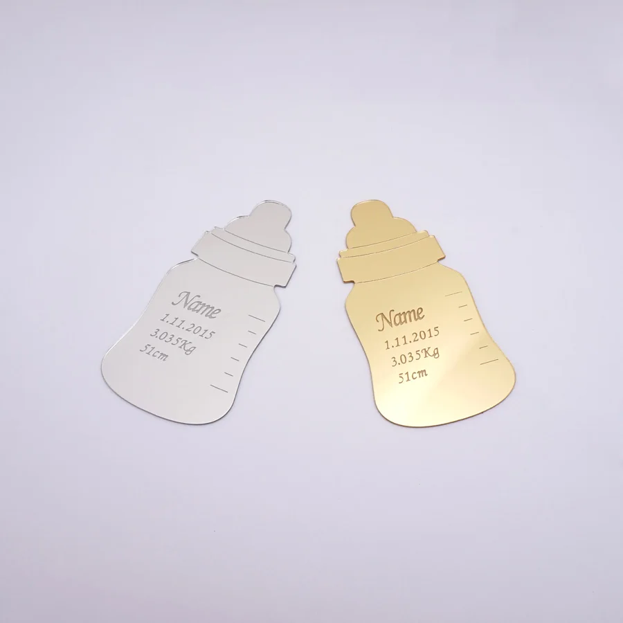 Персонализированная красивая детская бутылочка, 30 шт., персонализированная форма, имя, вес, высота, акриловые зеркальные наклейки, вечерние приглашения, 5*10 см