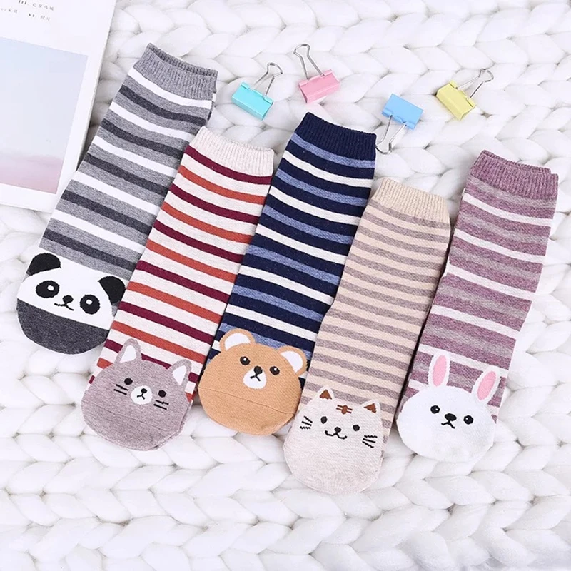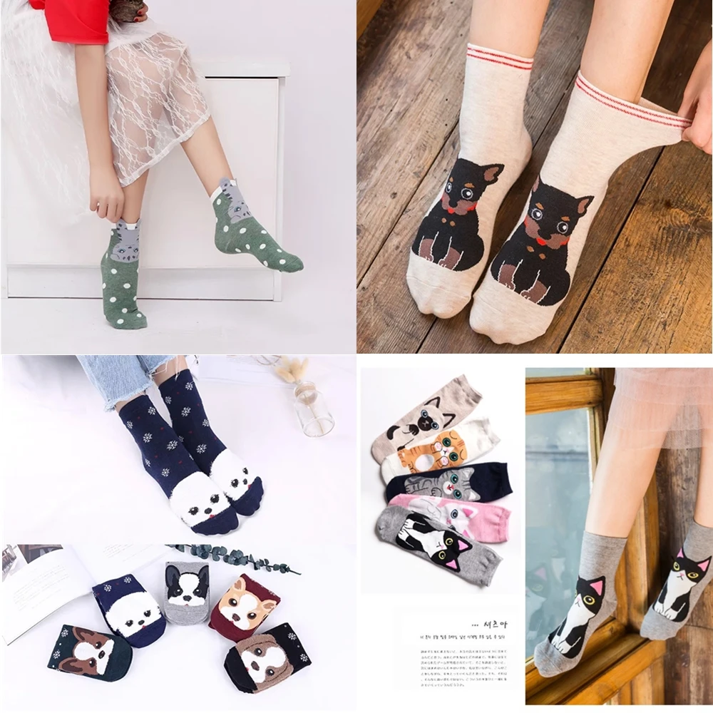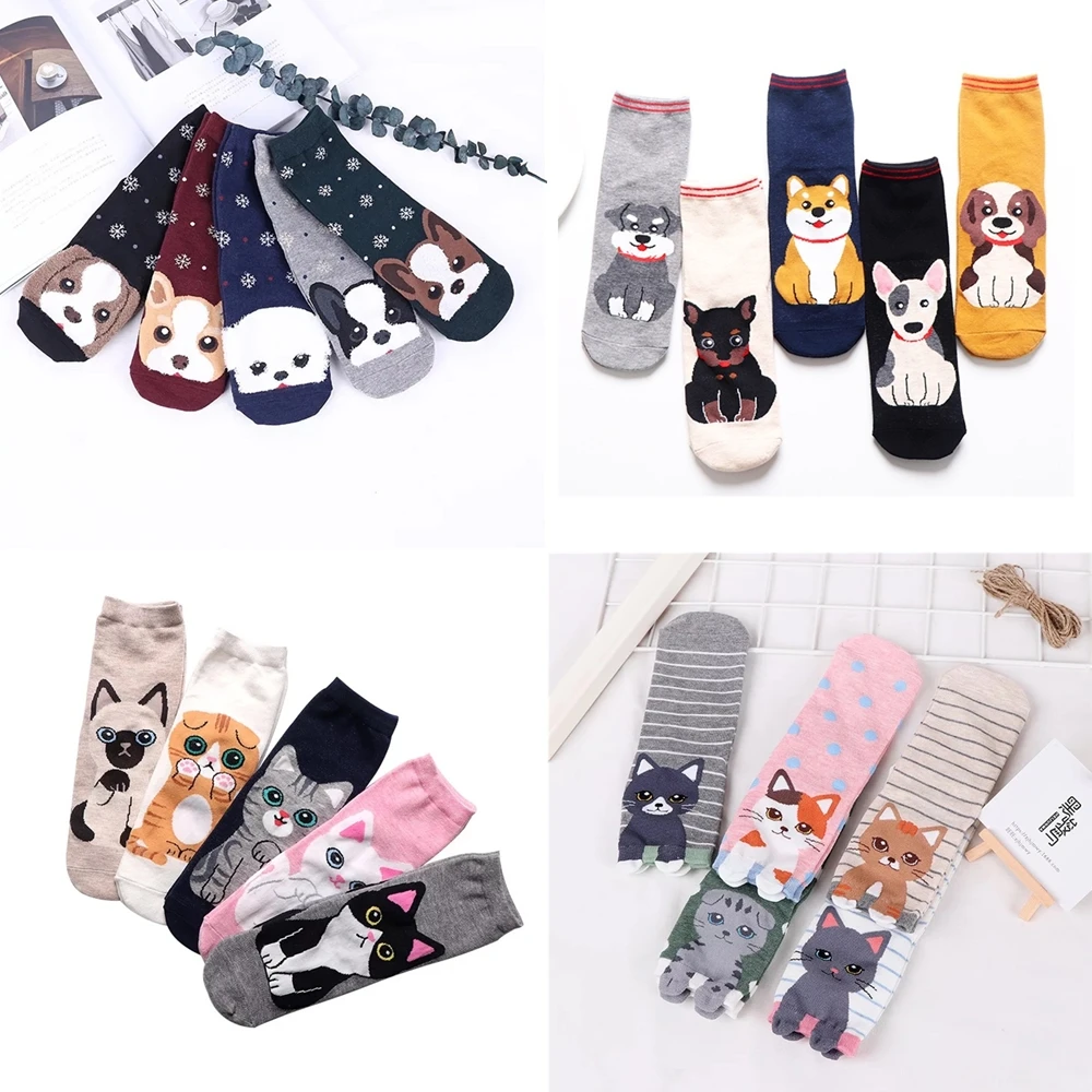 Женские носки; Модные новые носки из чесаного хлопка с героями мультфильмов; Забавные носки с изображением котенка и щенка