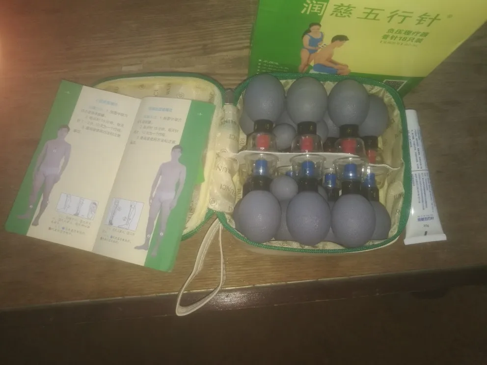 Заказ пришёл быстро, полный комплект. Книжка с инструкцией на китайском, но я делаю перевод через сканер в телефоне, в общем можно понять. Банки пока не применяли, потому об эффективности процедуры ничего не скажу.