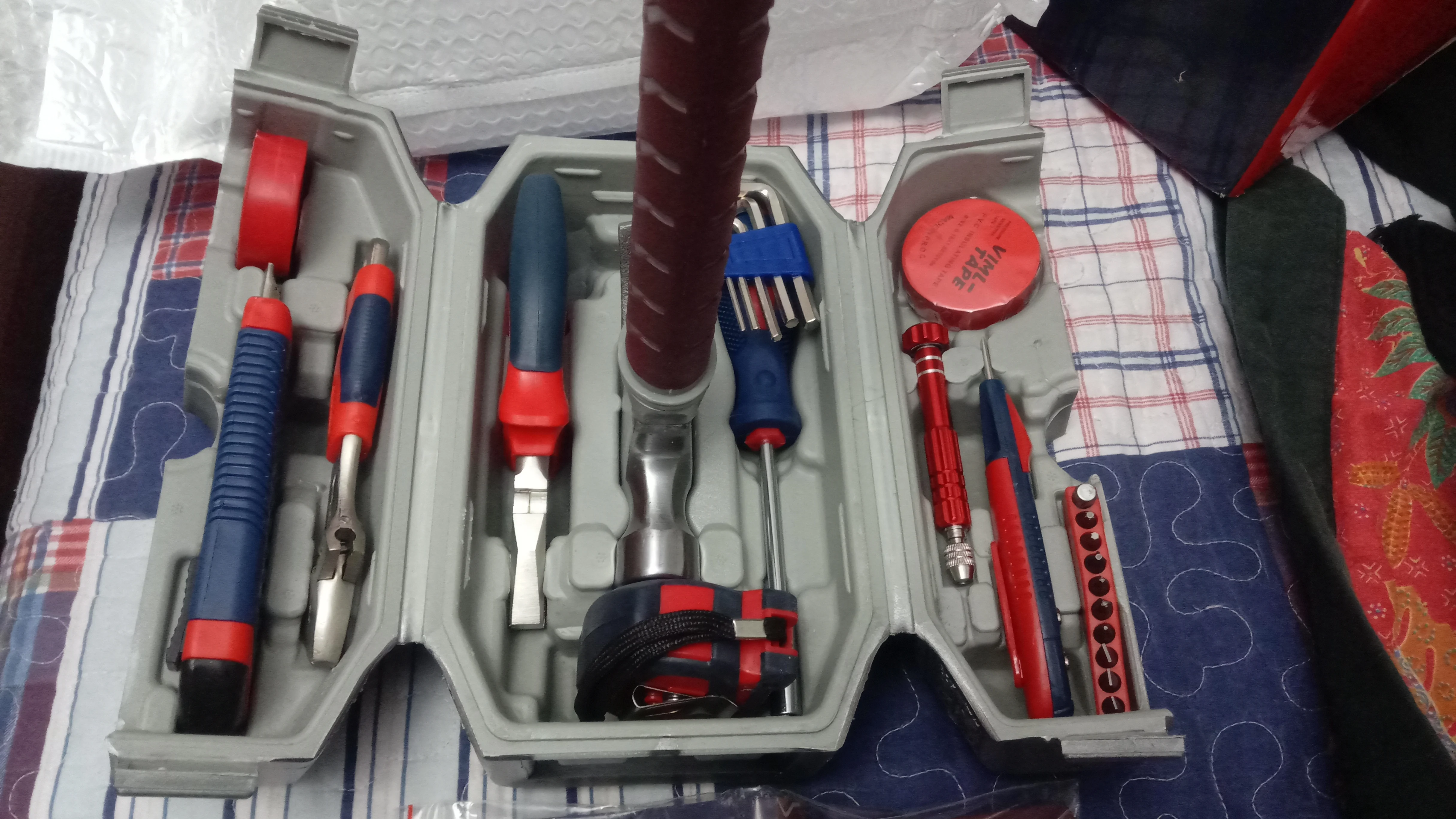 Некоторые инструменты немного грязные и жирные. Не самое лучшее из отделки на ручке молотка, но металлическая коробка имеет хорошие детали. Я бы порекомендовал его получить. Вы не найдете более дешевую доставку в другом месте. Товар прибыл всего за неделю.