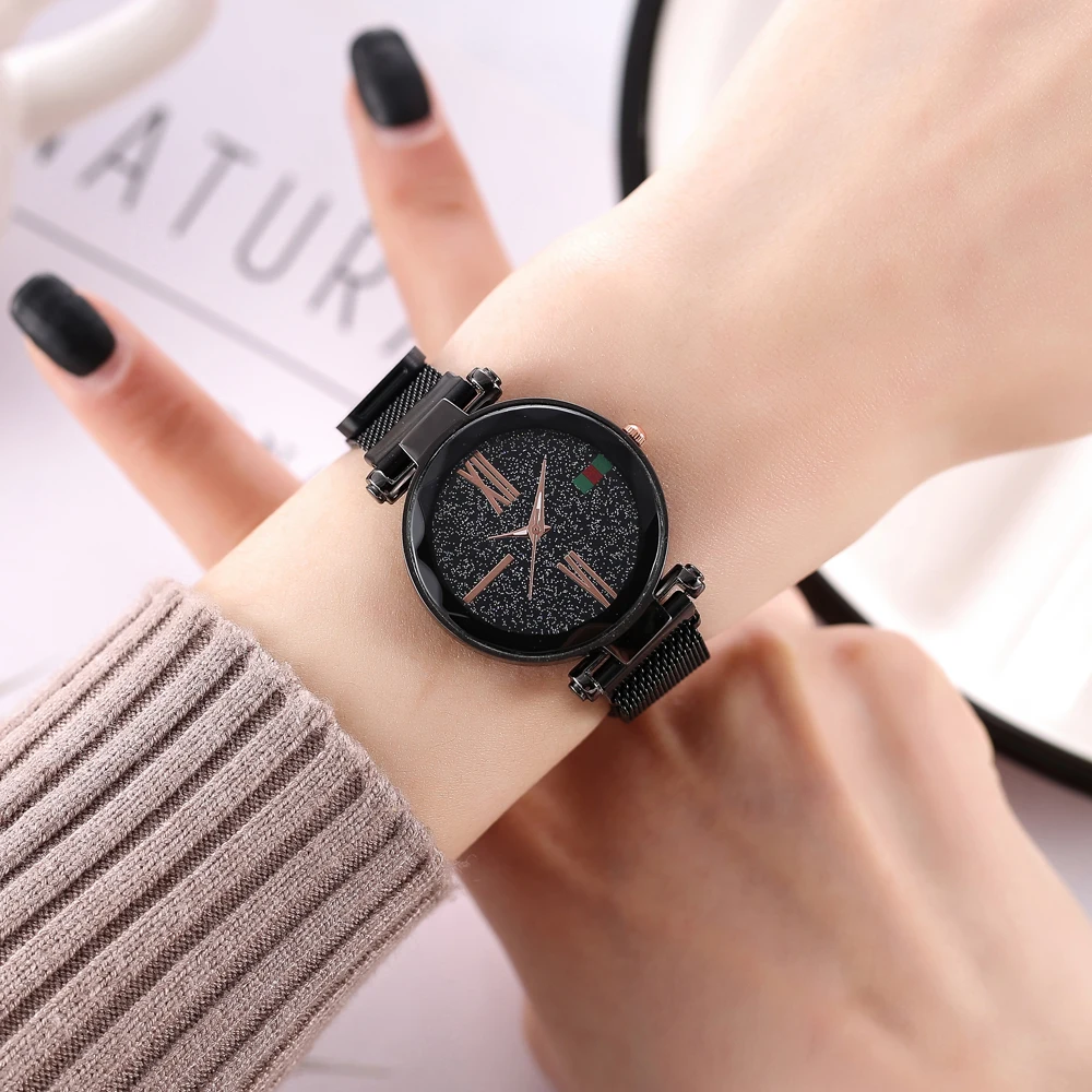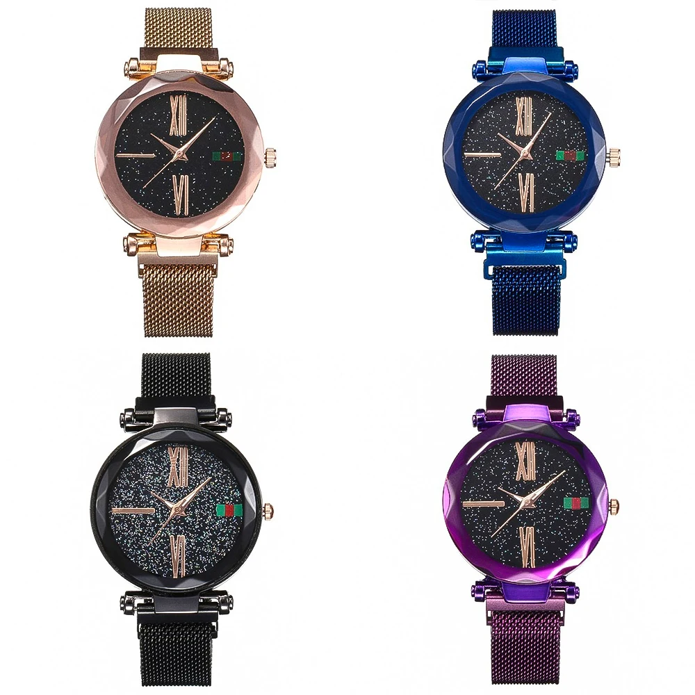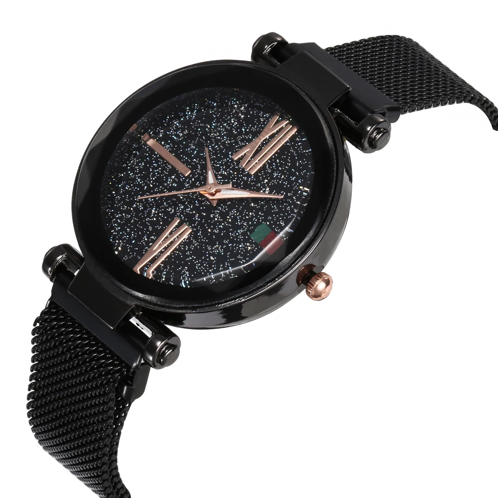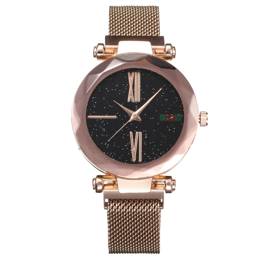 Женские наручные часы, минимализм, звездное небо, магнитная пряжка, розовое золото, водонепроницаемые, римские цифры