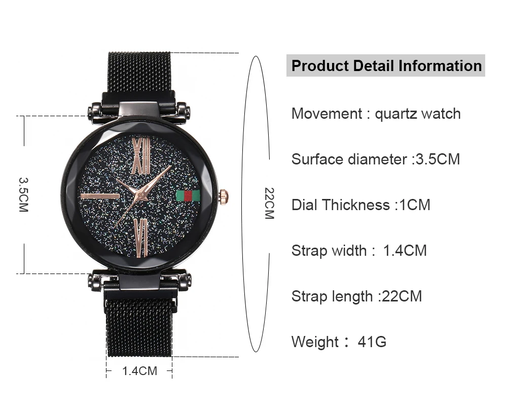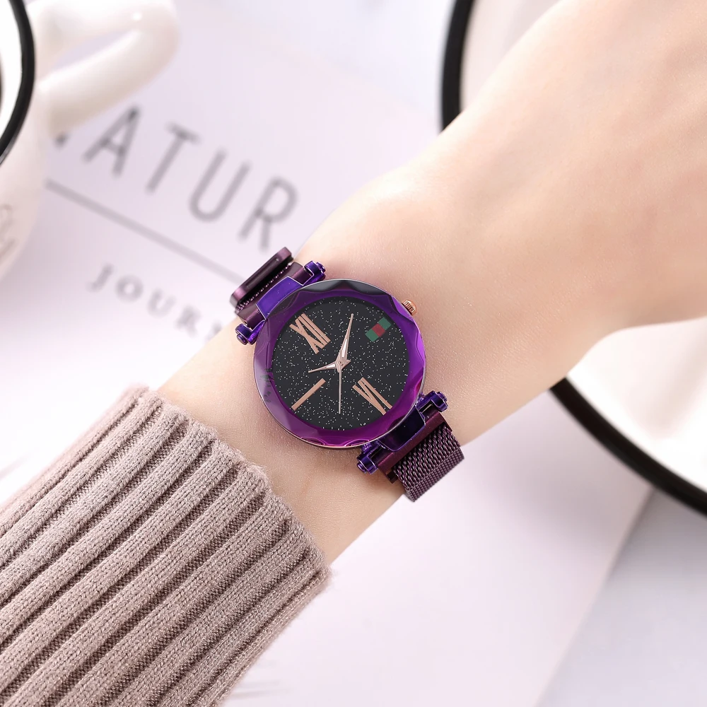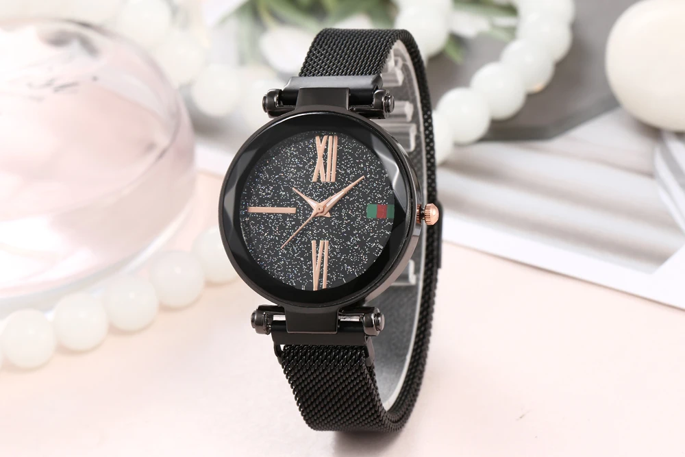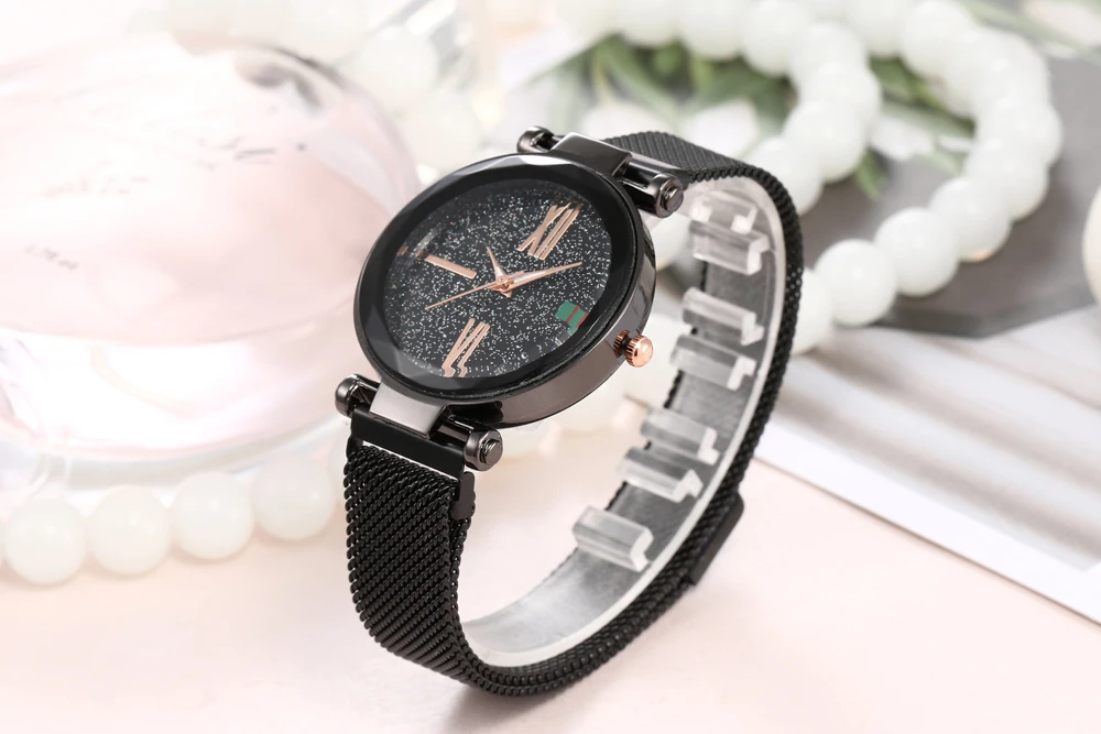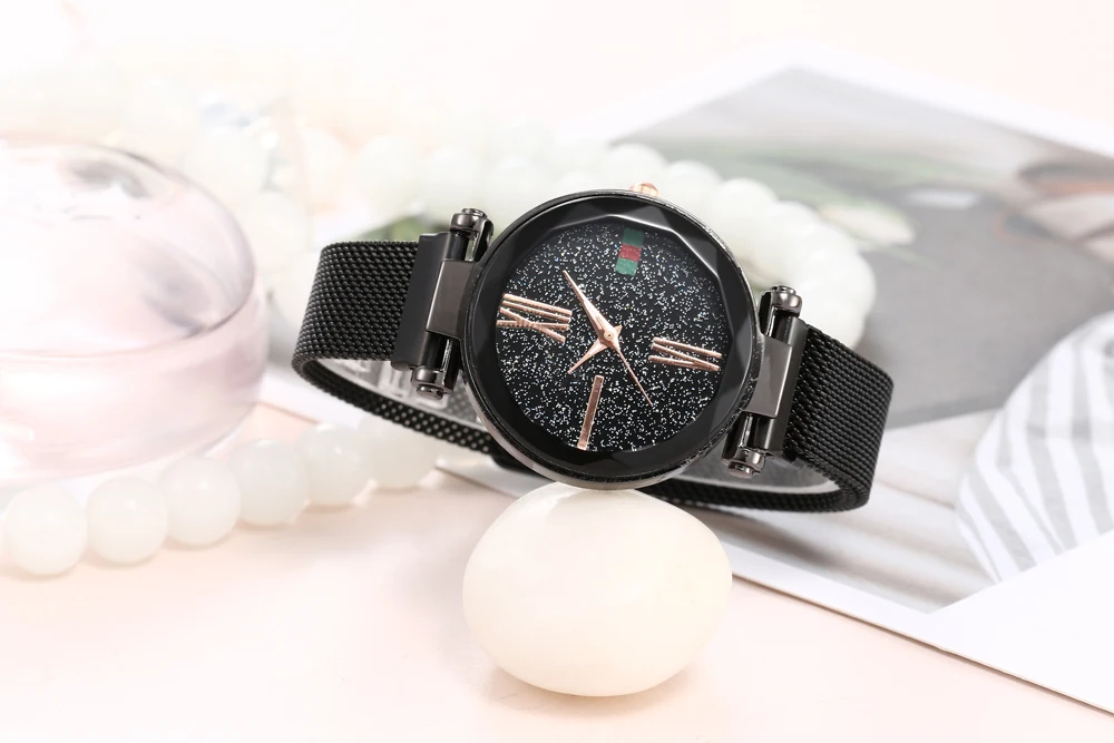 Женские наручные часы, минимализм, звездное небо, магнитная пряжка, розовое золото, водонепроницаемые, римские цифры