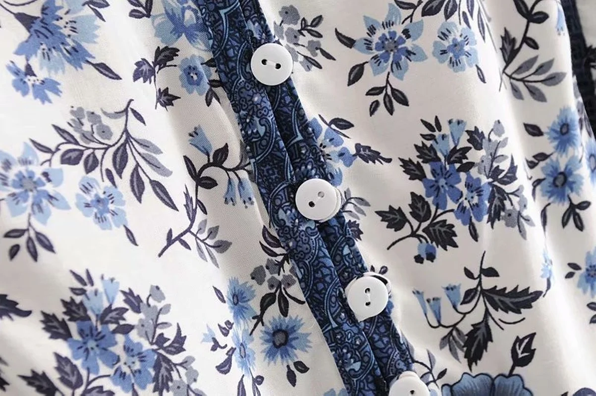 Женское винтажное платье-мини с цветочным принтом, V-образным вырез...