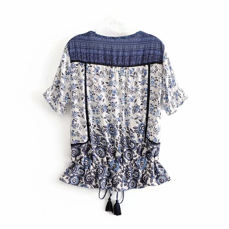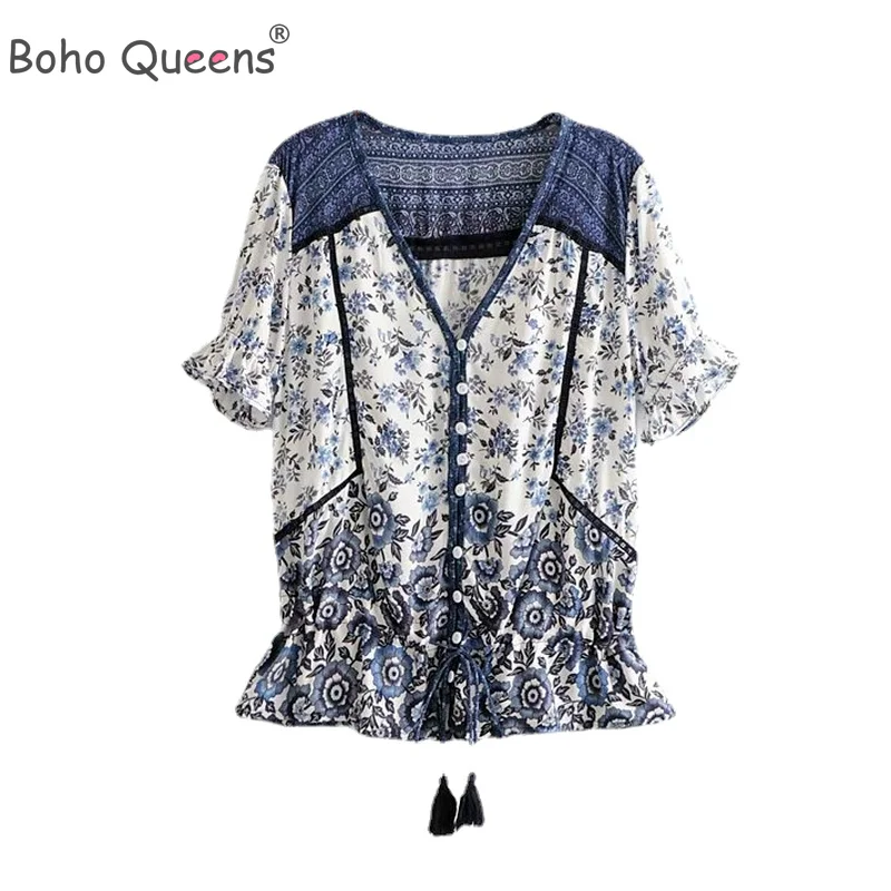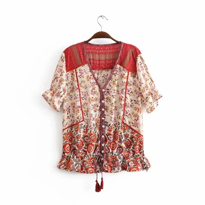Блузка женская в стиле бохо, Винтажный Розовый Топ с цветочным прин...