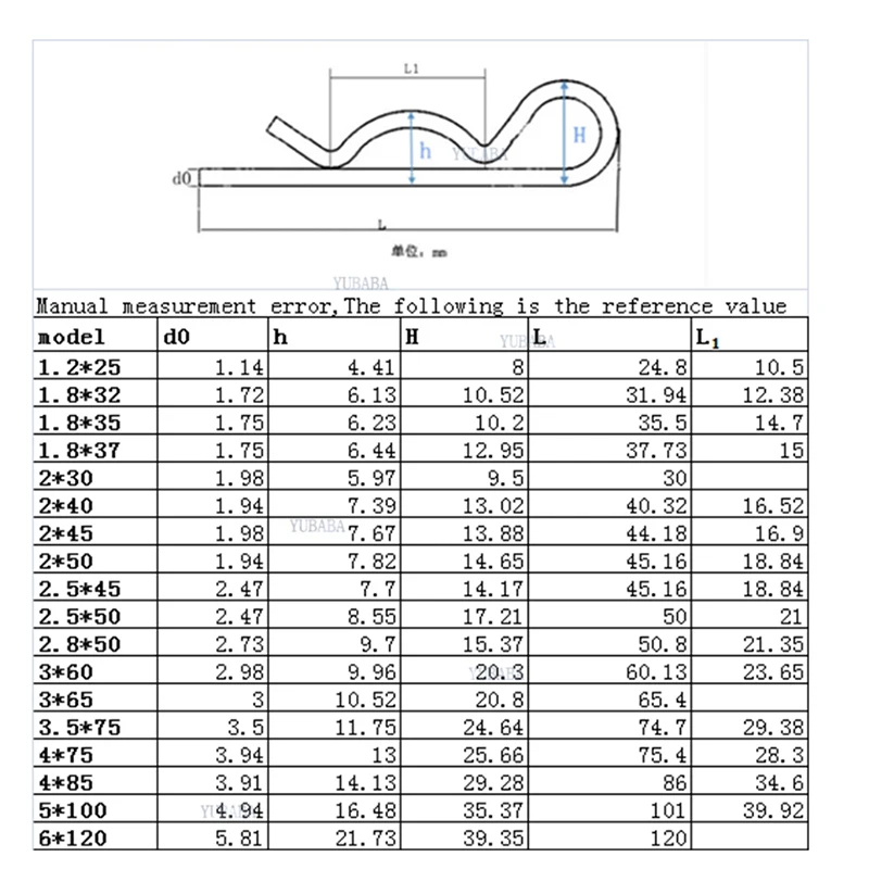 Шплинты R-типа для автомобилей, M1.2, M1.8, M2, M2.5, M3, M3.5, M4, M5, M6 DIN 11024